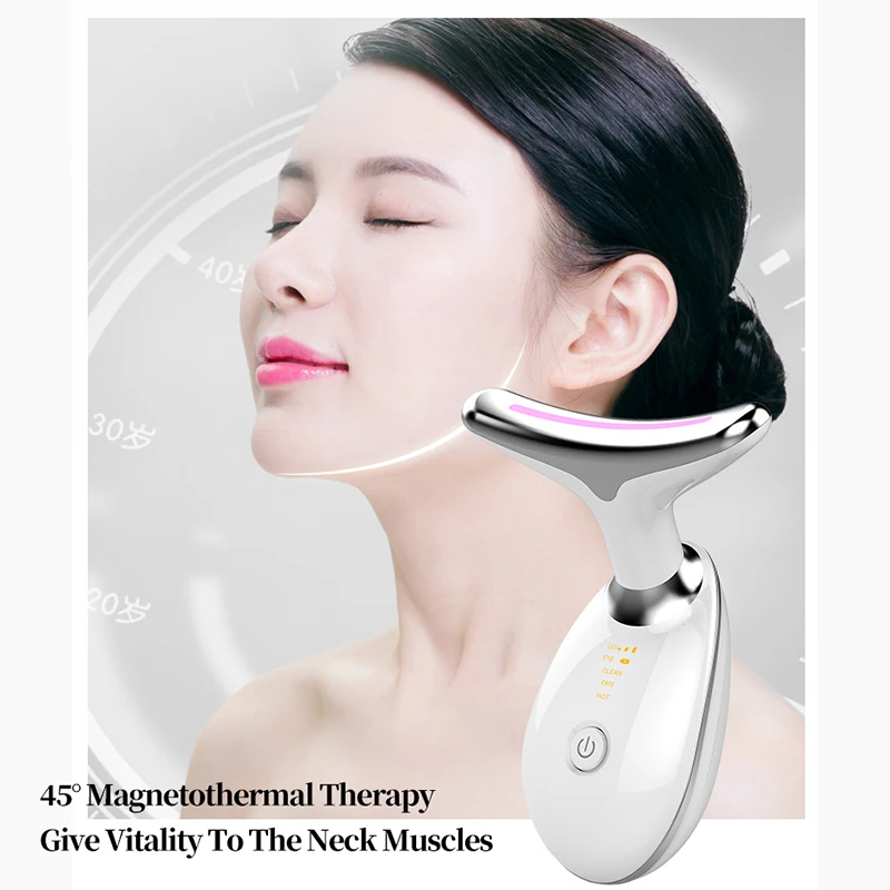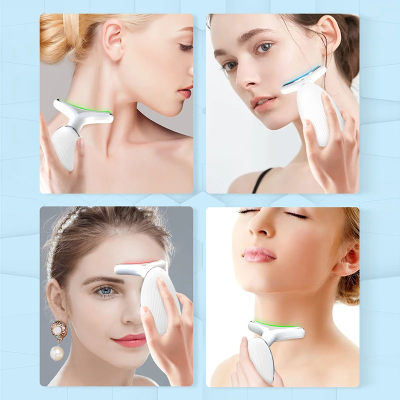 Светодиодный массажер для лица, для шеи, домашний, 3 цвета, светодиодный, фотонная терапия, косметический инструмент, лифтинг и подтяжка, линия для шеи