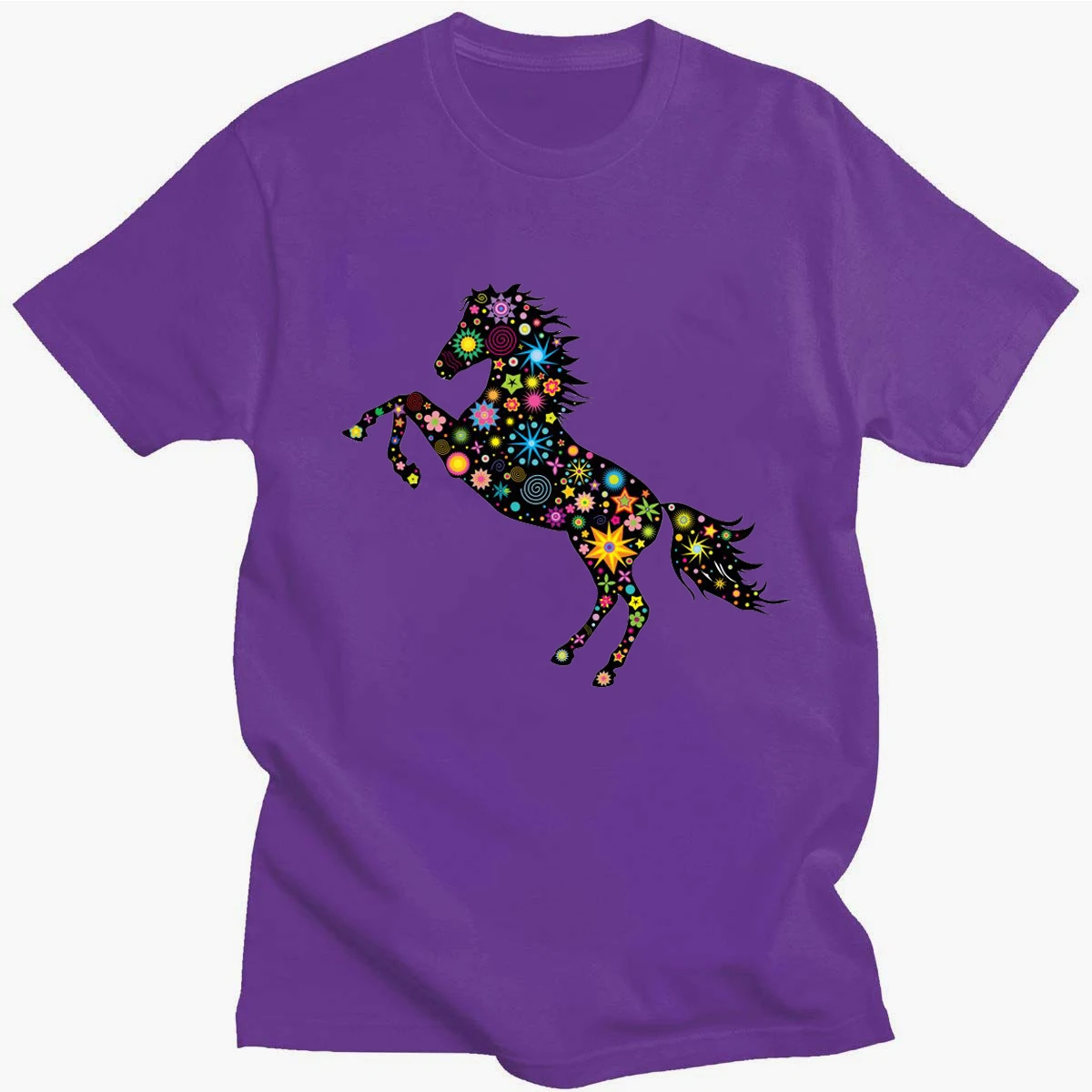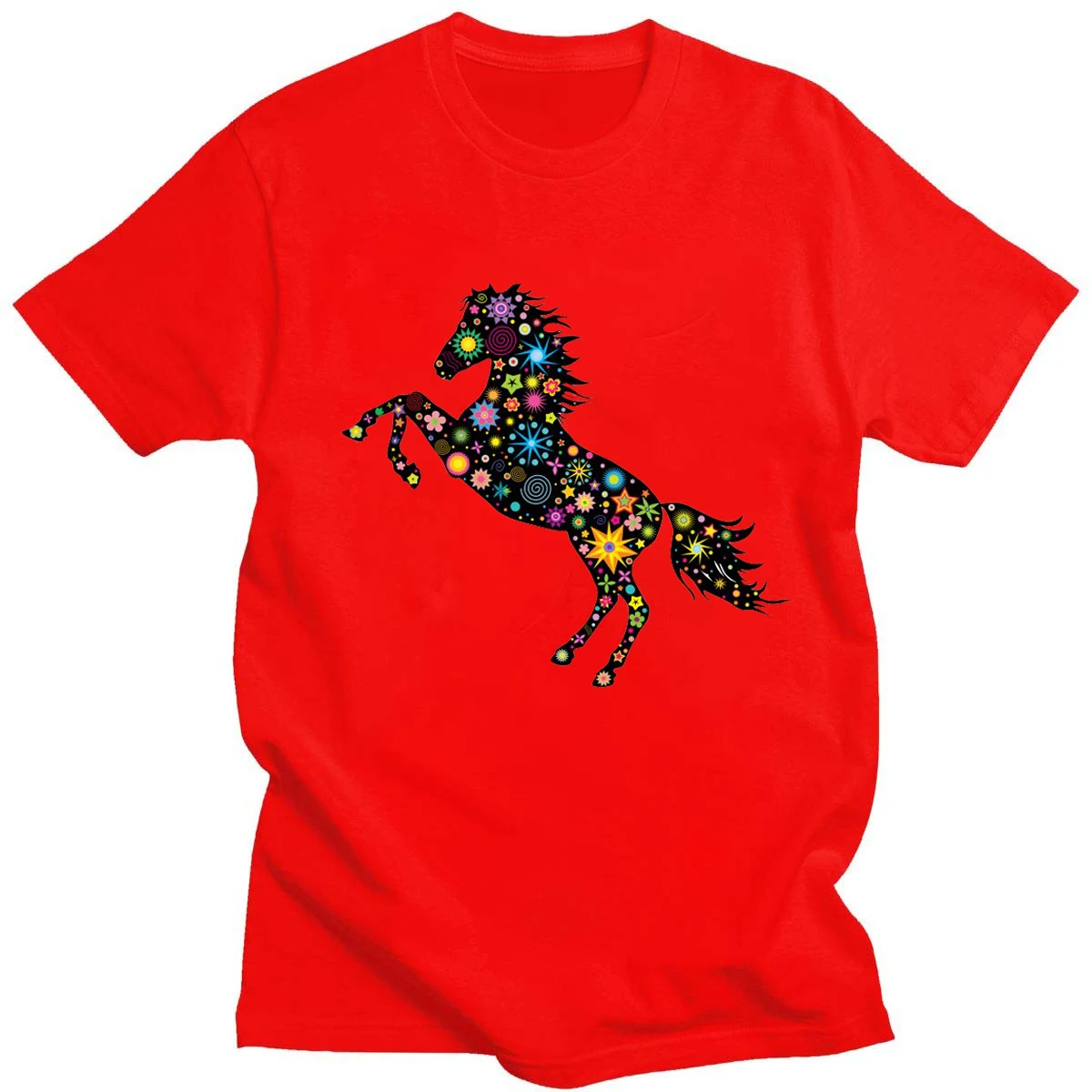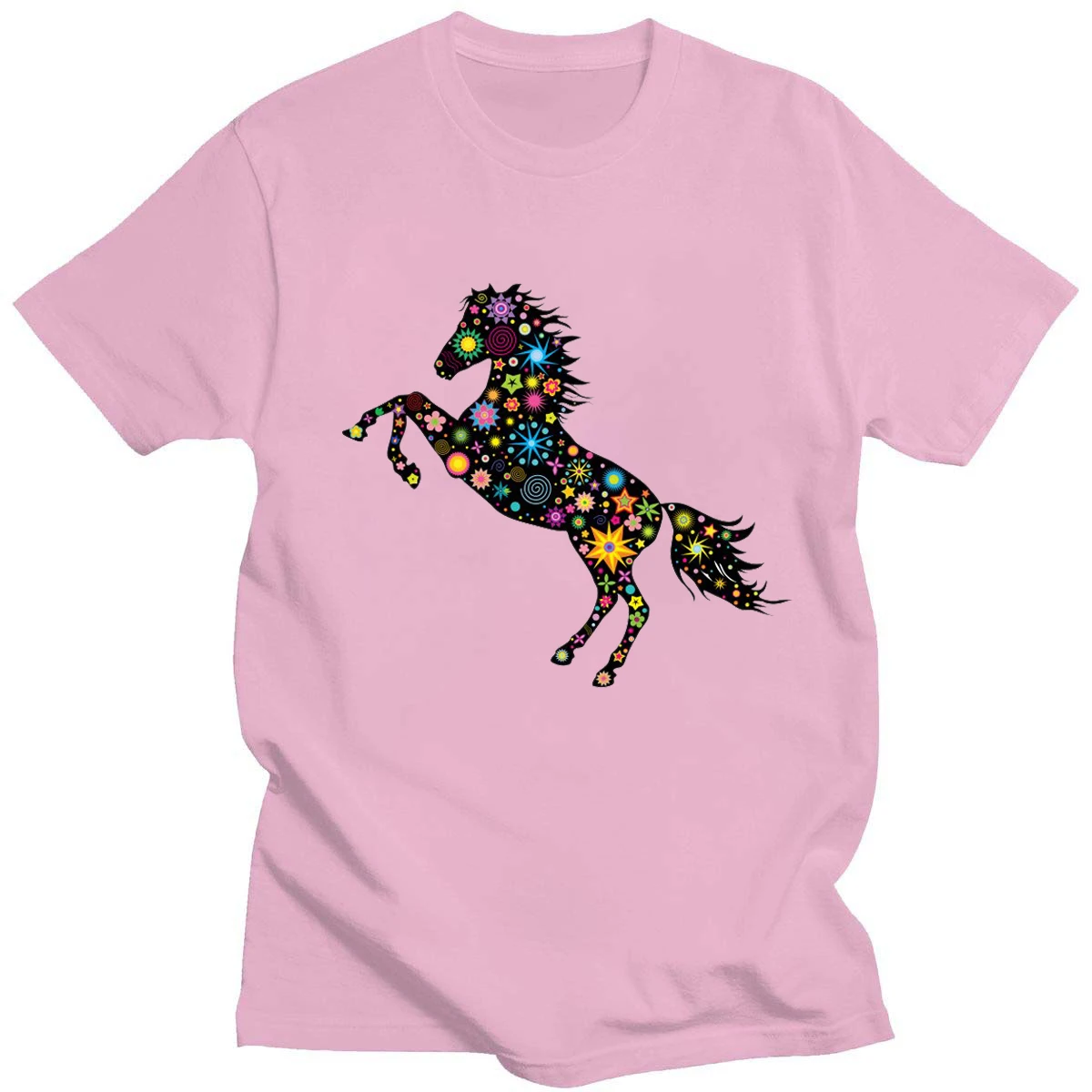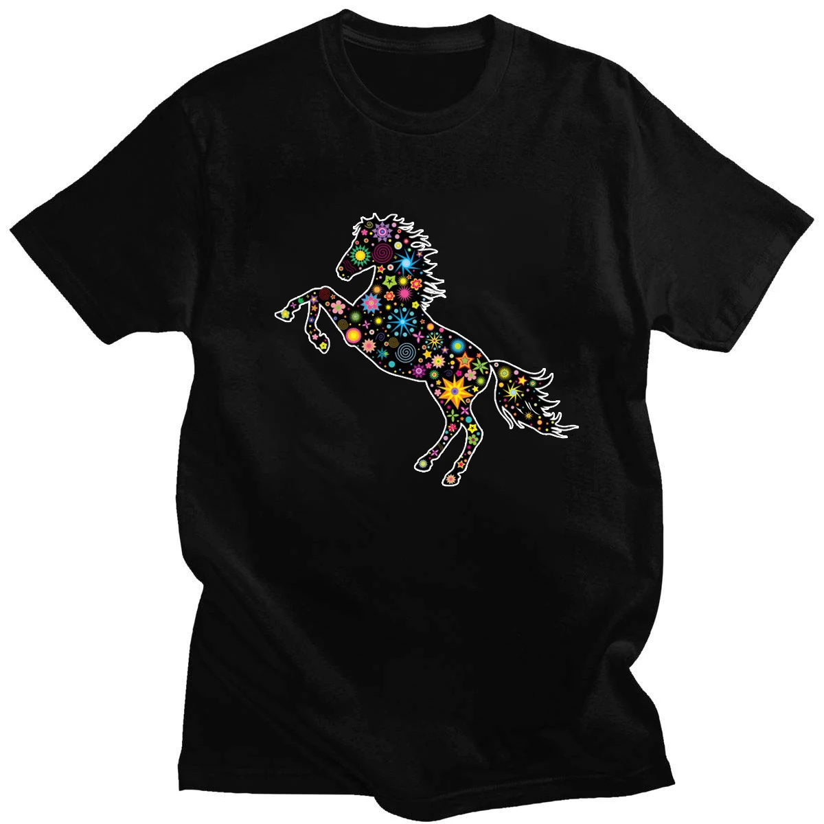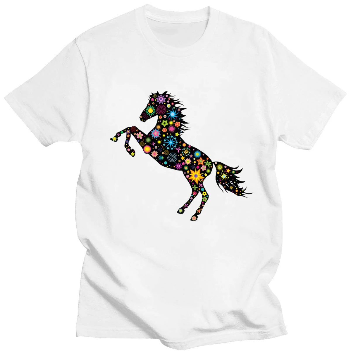 Летняя футболка с геометрическим принтом темных лошадей, нейтральный топ из чистого хлопка в стиле Харадзюку с круглым вырезом, повседневный Топ 14 цветов на каждый день, новинка, с коротким рукавом