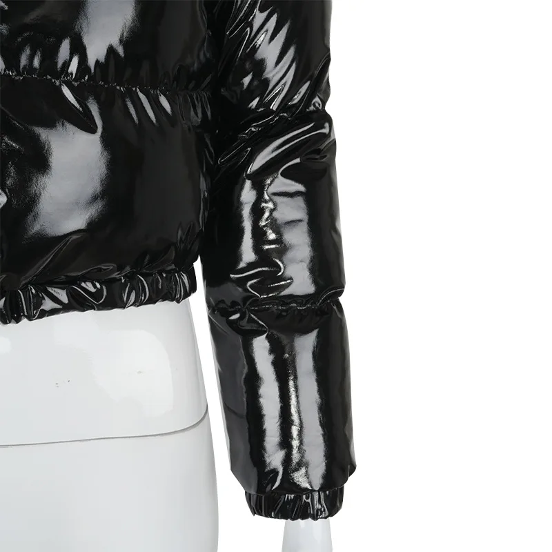 Куртка-пуховик женская зимняя из искусственной лакированной кожи, н...