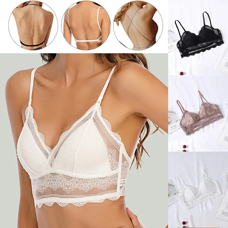 Бюстгальтер женский с открытой спиной, пикантный тонкий кружевной с...