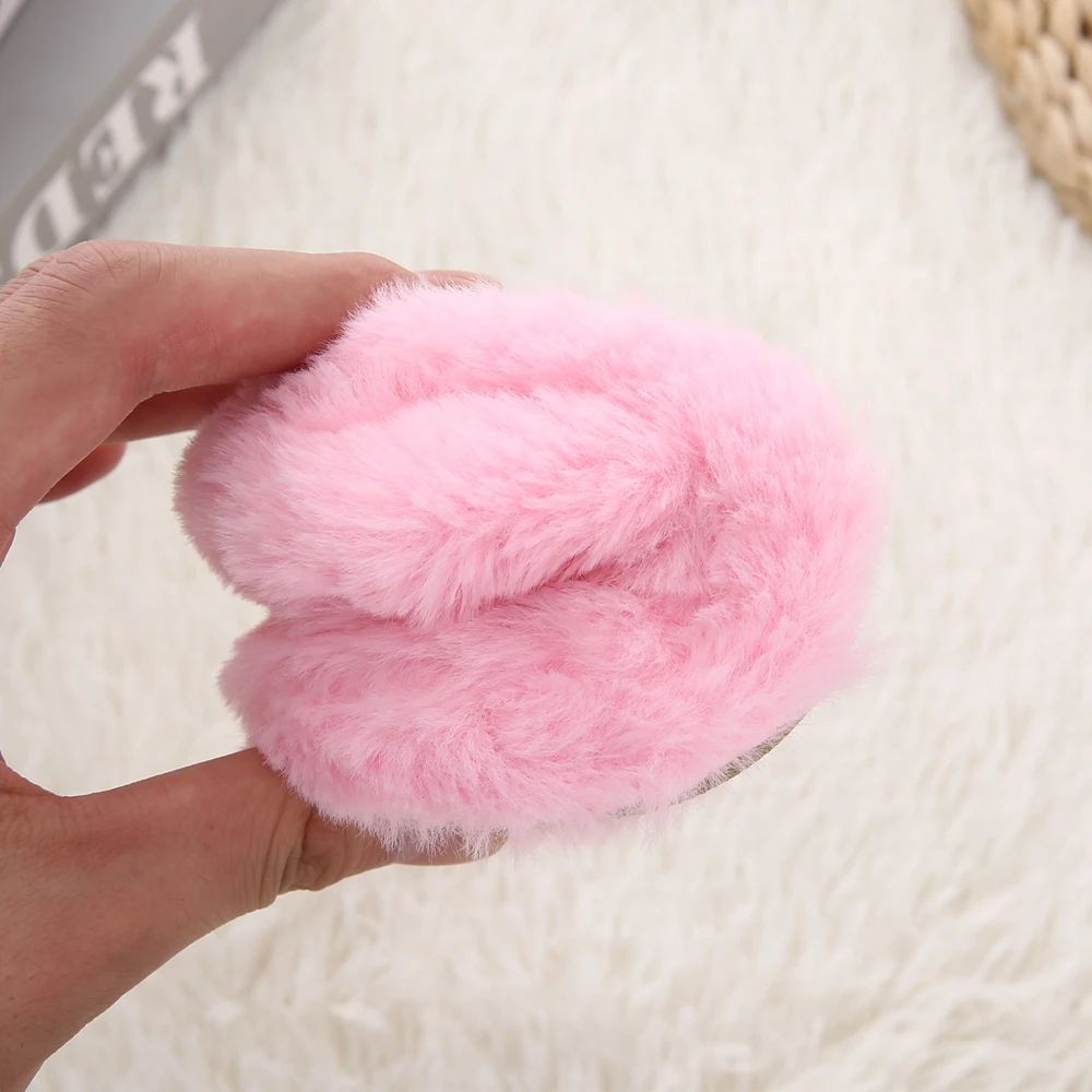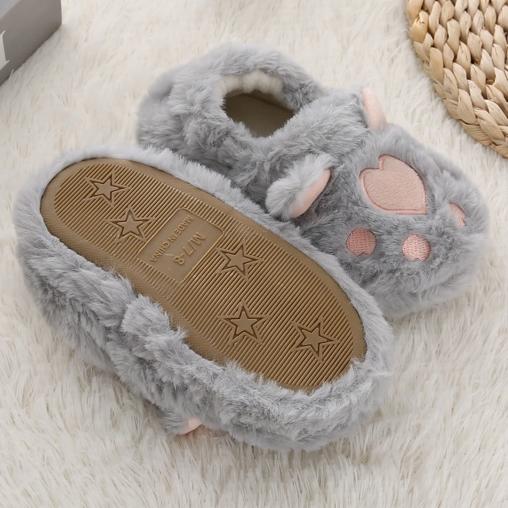 Тапочки для маленьких девочек зимние плюшевые теплые розовые домашние туфли с мультяшным рисунком кошачьей лапы Лоферы для маленьких детей обувь на мягкой резиновой подошве для мальчиков