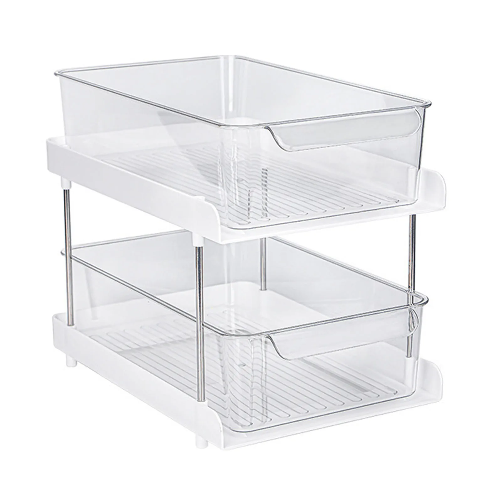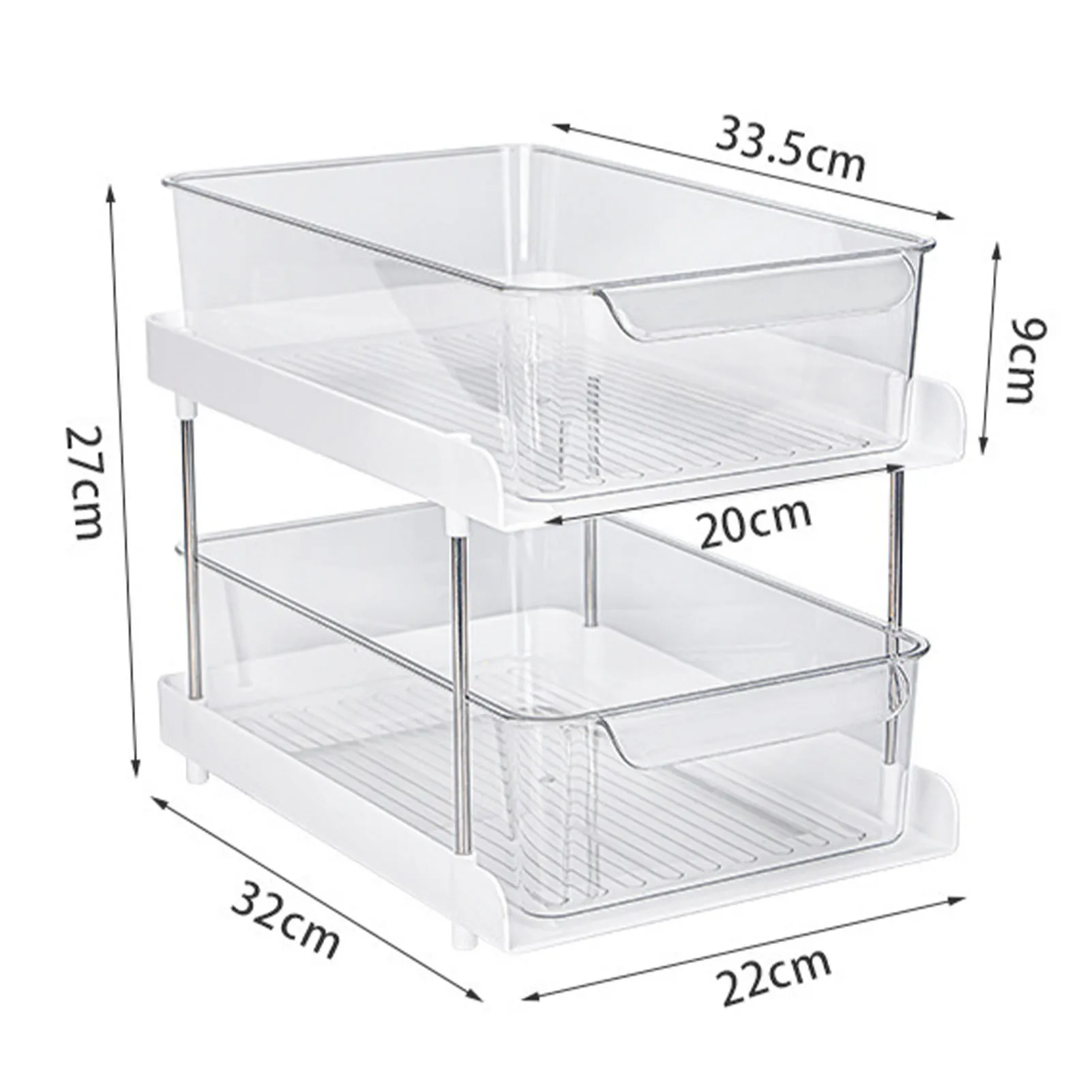Спецификация:Название: PET кухня коробка для хранения с Двойные выдвижные ящикиМатериал: ПЭТ + ПП + металлЦвет: прозрачныйРазмер: около 34 × 22 × 27 см/13,39*8,66*10,63 дюймаВес посылка: около 1120 г