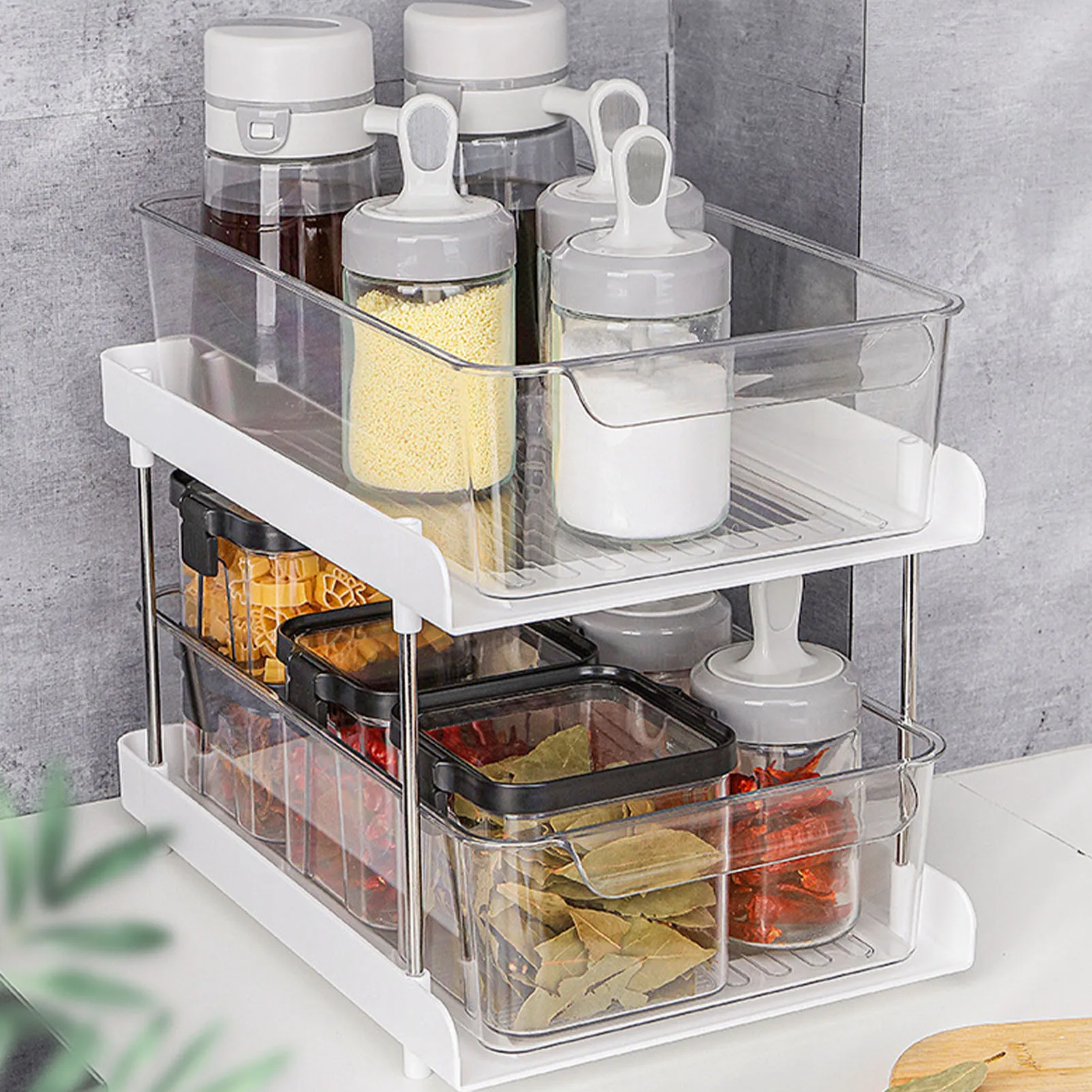 2-уровневый кухонный стеллаж для хранения бутылок для специй, подставка под раковину, контейнер для хранения соевого соуса, уксуса, приправ