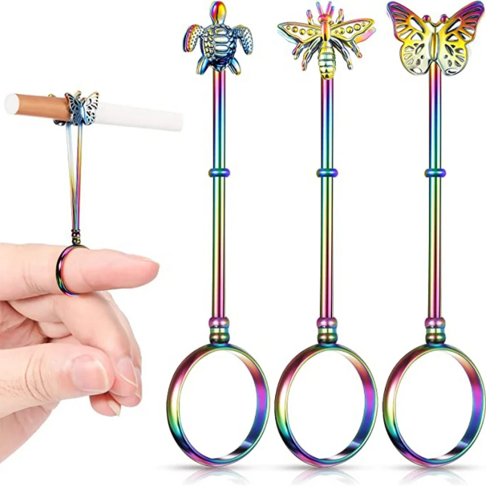 Цветной металлический держатель для сигарет, Винтажное кольцо на па...
