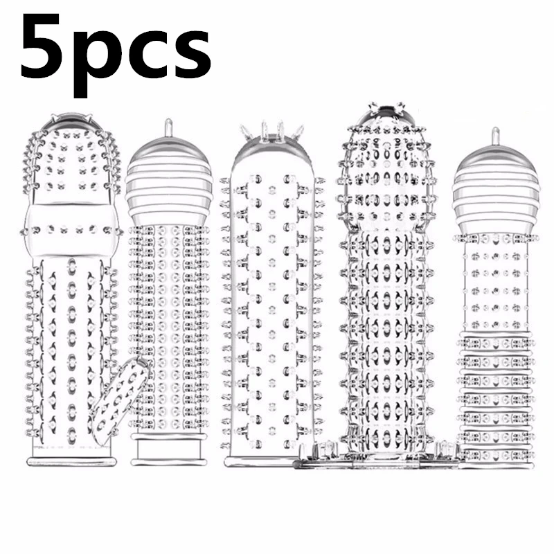 5 шт., многоразовые презервативы, Мужской пенис, удлиняющий рукав, фиксатор спермы, кольцо на член, фаллоимитатор, взрослые секс-игрушки для мужчин, Задержка эякуляции