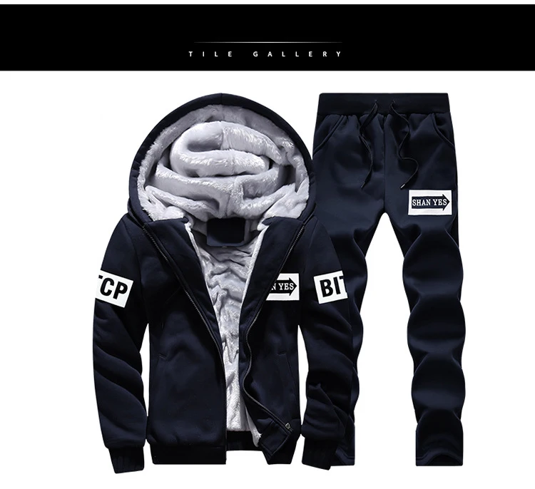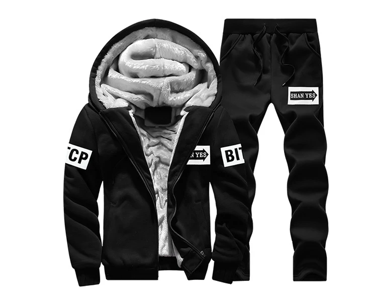 Теплый спортивный костюм для мужчин, комплект из 2 предметов, зимни...