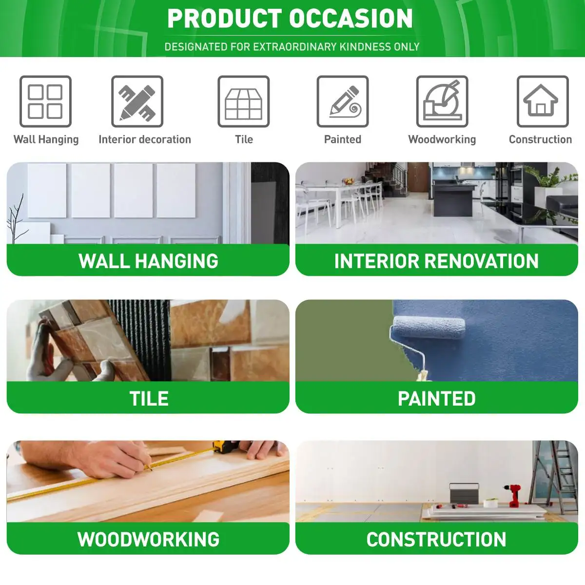-Широкое применение для крепления вспомогательной плитки, украшения стен, фиксации напольной плитки, лестничных поручней, пушистого потолка, напольной плитки, штукатурки.