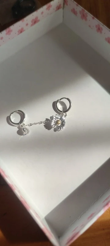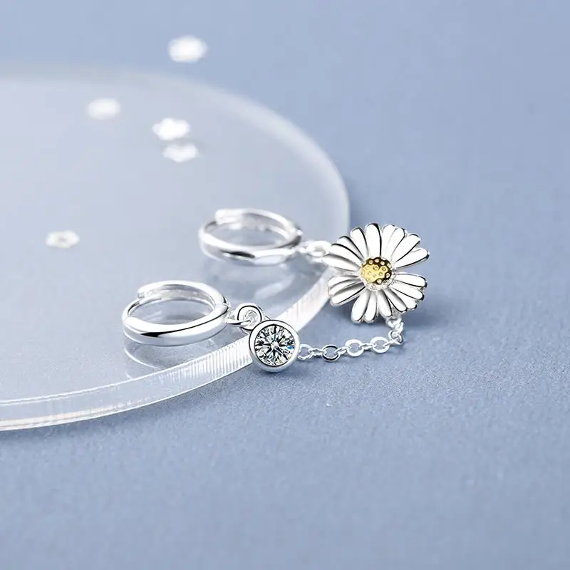 Оригинальные серьги из серебра 925 пробы с маргариткой, с двумя отв...