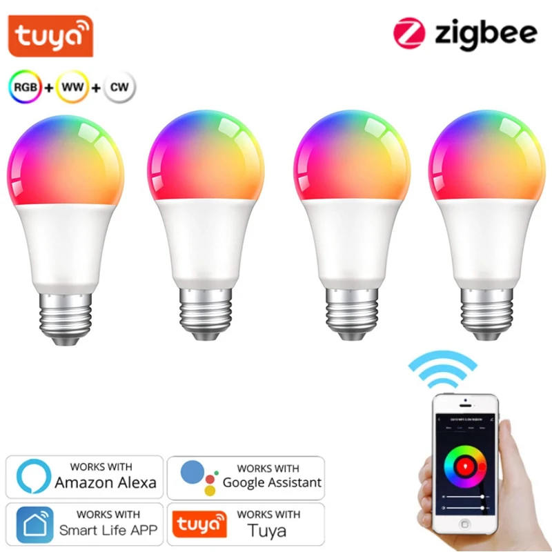 Умная Светодиодная лампа Tuya Zigbee, приглушаемая Ночная лампа, 9 Вт, E27, совместима с Alexa, Google Home Echo Assistant, требуется концентратор Zigbee
