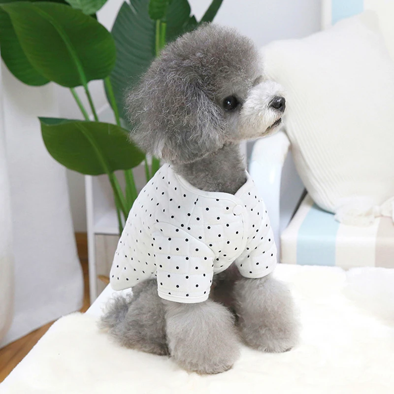 Зимняя одежда для собак, толстовка, пальто в горошек, хлопковое пал...