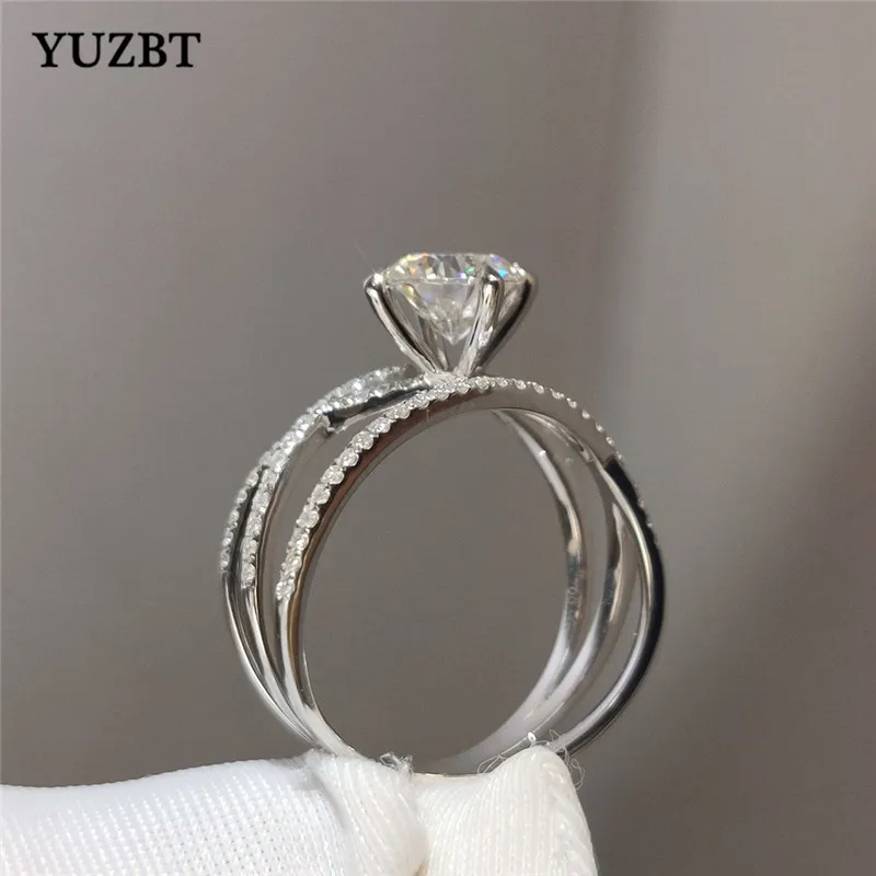 YUZBT Женское Обручальное кольцо из серебра 925 пробы, 1 карат, с превосходной огранкой, с бриллиантом, с муассанитом