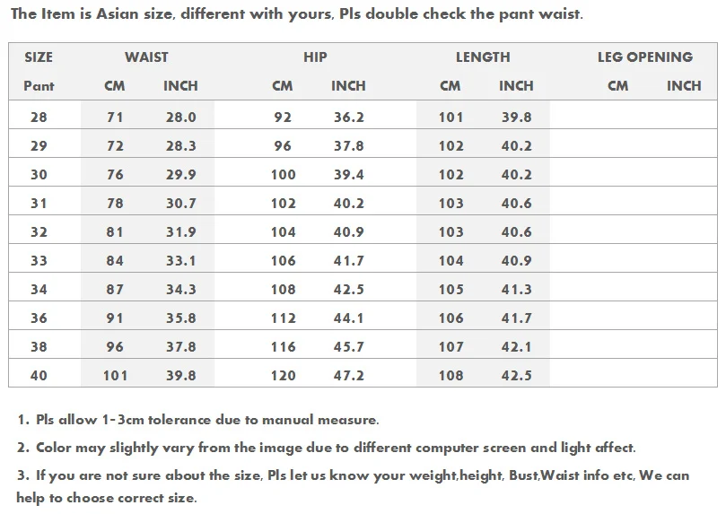 Данный товарАзиатский размер, отличается от вашего, пожалуйста, дважды проверьте обхват талии брюк.