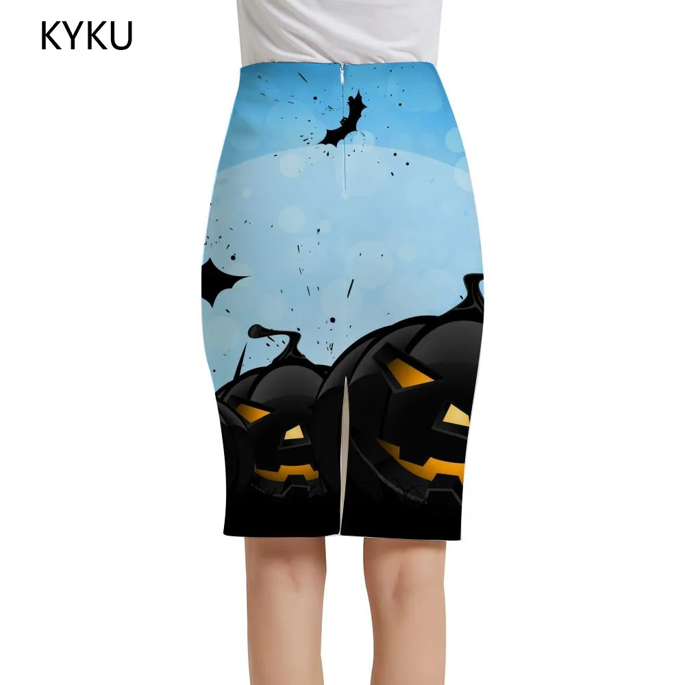 Женская юбка-карандаш KYKU, повседневная элегантная юбка с принтом тыквы, летучей мыши и Луны, с цветочным принтом в Корейском стиле, лето 2019