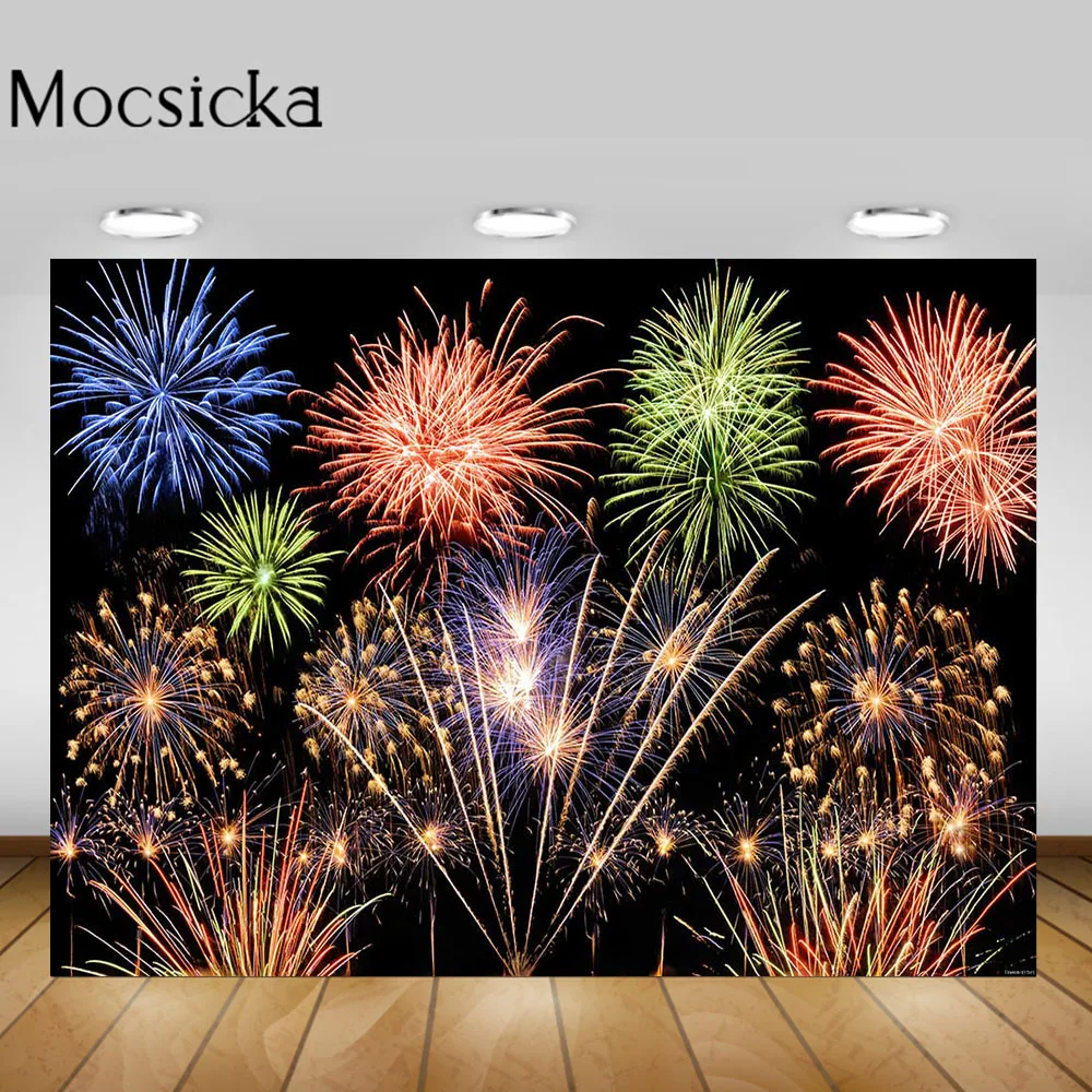 Фон Mocsicka с фейерверком для новогодней фотосъемки малыша, дня рождения, семейный портрет