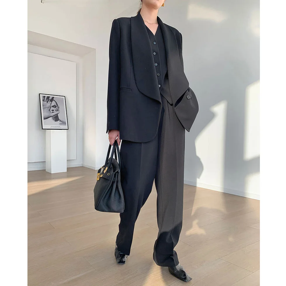 Комплект из двух предметов со штанами для женщин; Новинка 2021 года; Сезон осень; Черные повседневные брючные костюмы; Модная одежда; Женские костюмы; Офисные комплекты