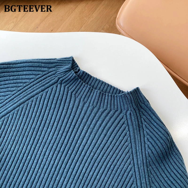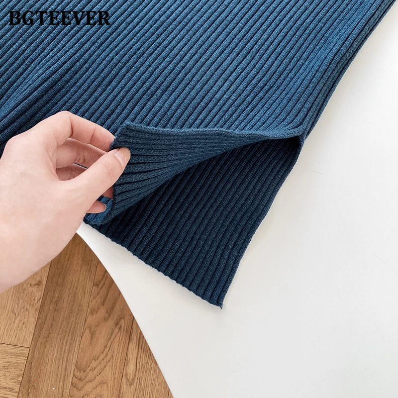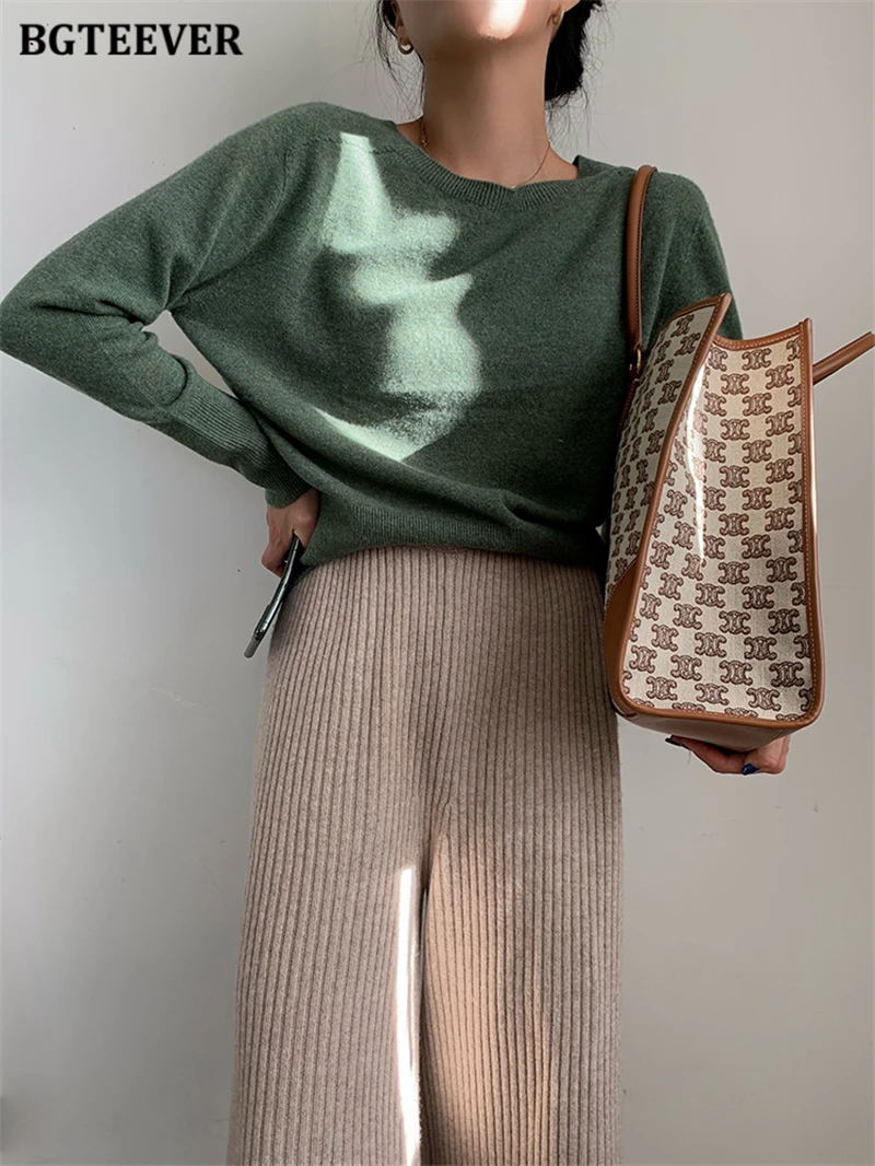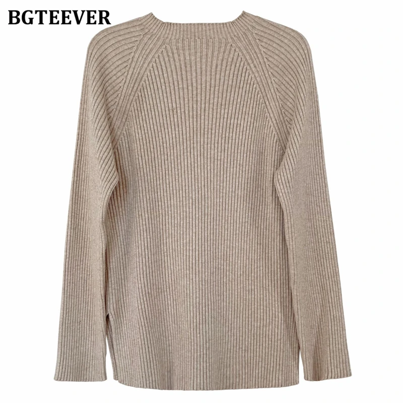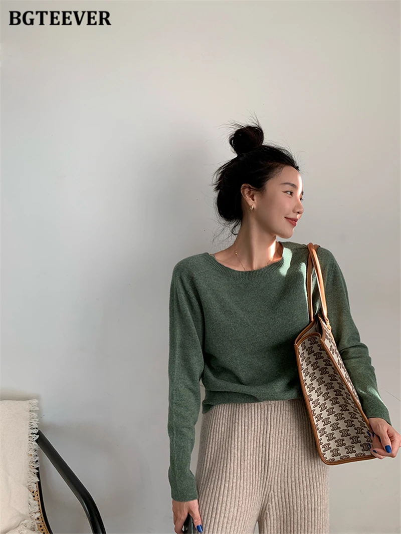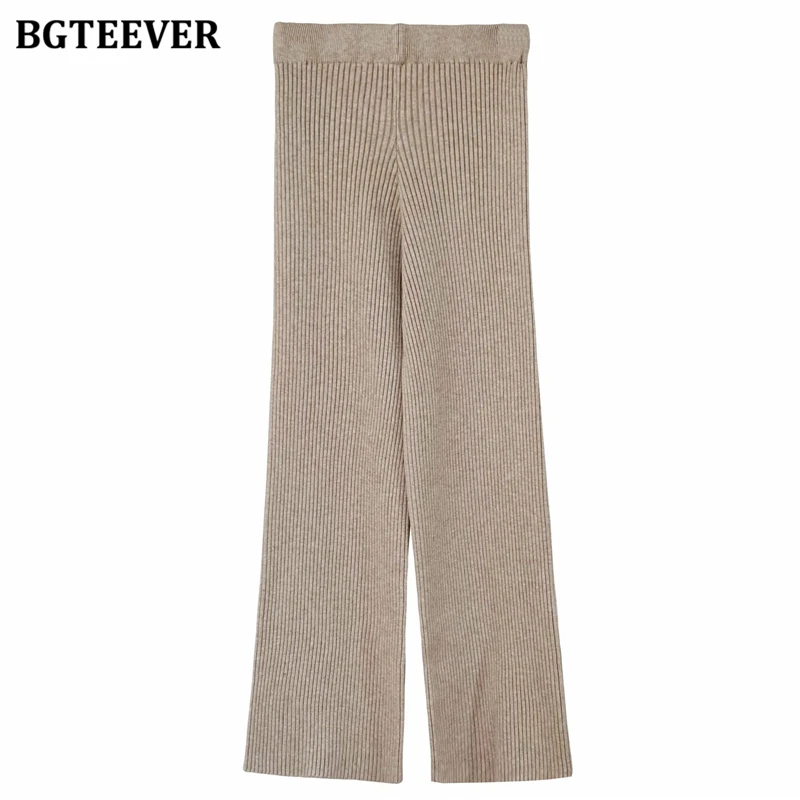 Женский трикотажный комплект BGTEEVER, однотонный пуловер с длинным рукавом и брюки с эластичным поясом, осень 2021, набор свитеров