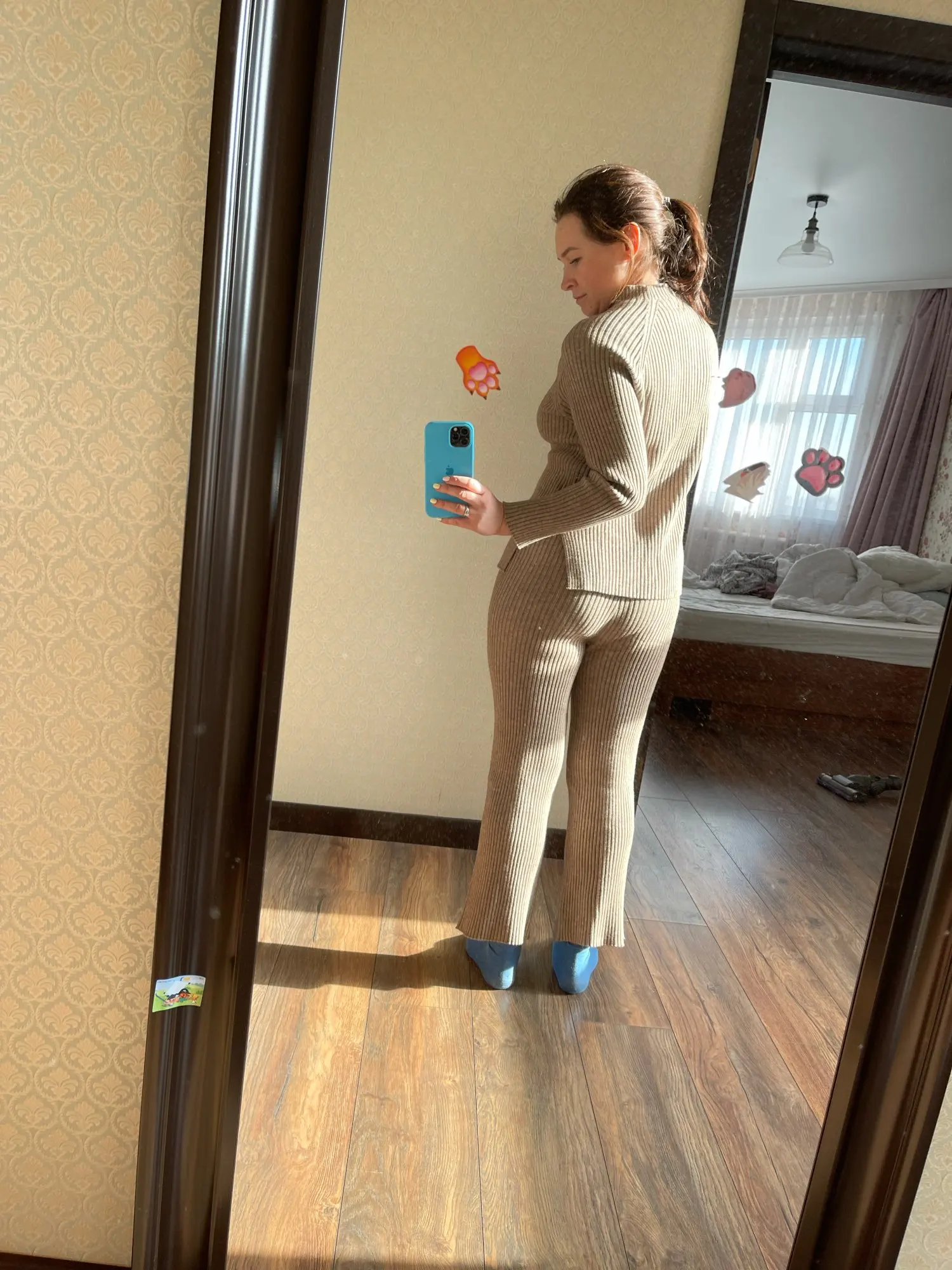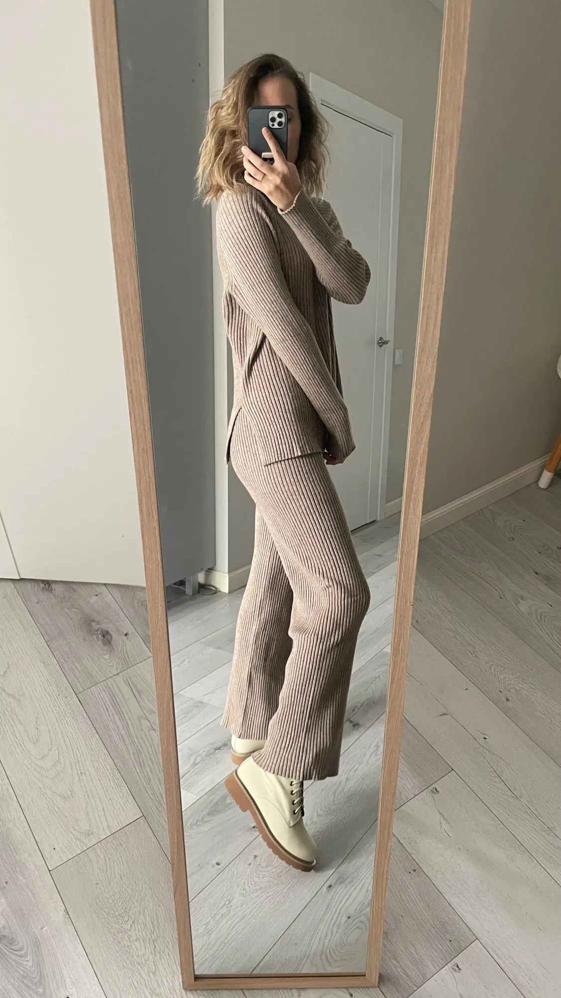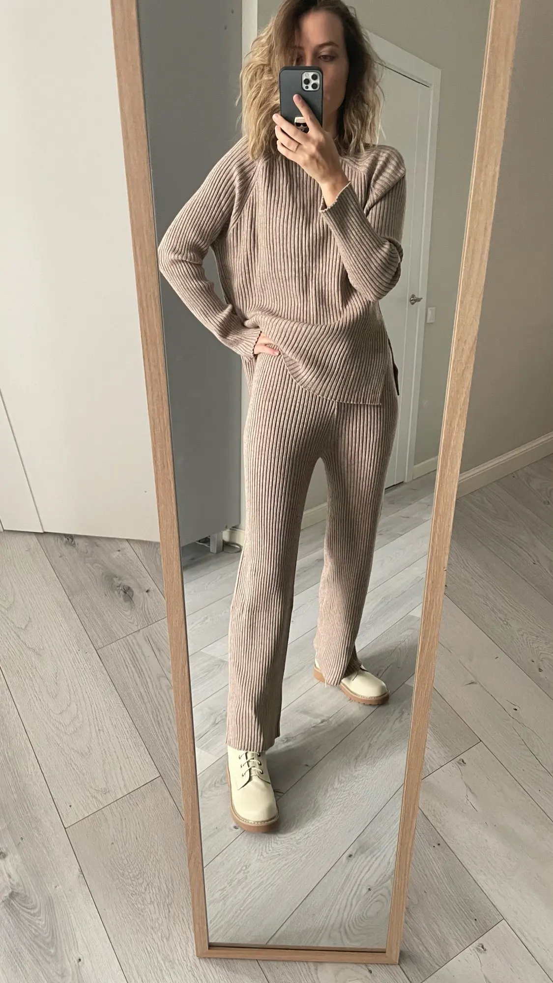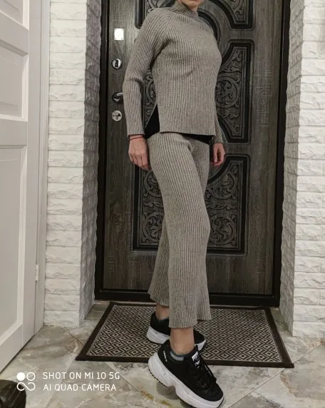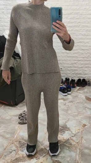 Самый классный трикотажный костюм с Ali express. Теплый, мягкий. Я взяла размер М на параметры 84-64-94 и рост 162. Сел отлично. Хорошо гладятся. На осень отличный вариант. Сшит качественно, постороннего запаха нет. Можно носить с поясом. Костюм настолько приятный к телу, что его не хочется снимать! Брюки немного расклешаются к низу. На резинке. Не жмет. Доставка в Москву за 2,5 недели. В подарок продавец положил резинку для волос. Упаковано в индивидуальный zip пакет. Я очень довольна Мой inst @juliakhara