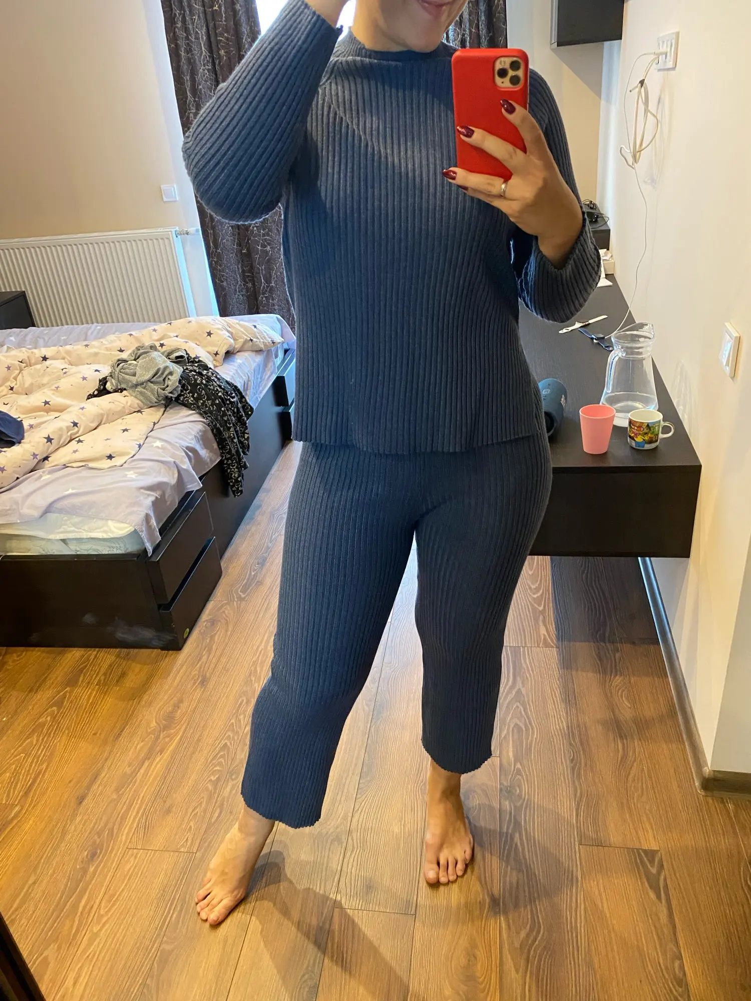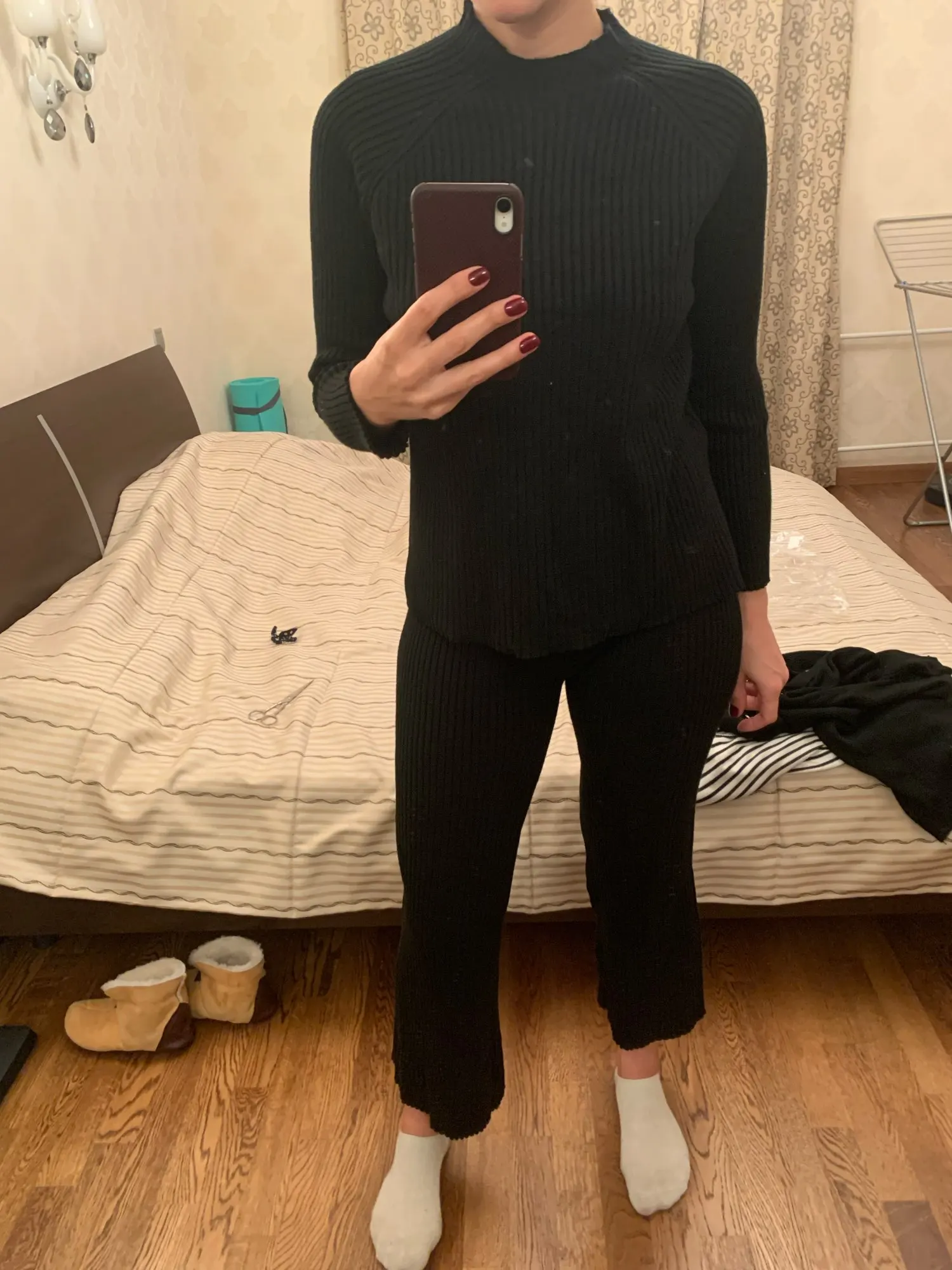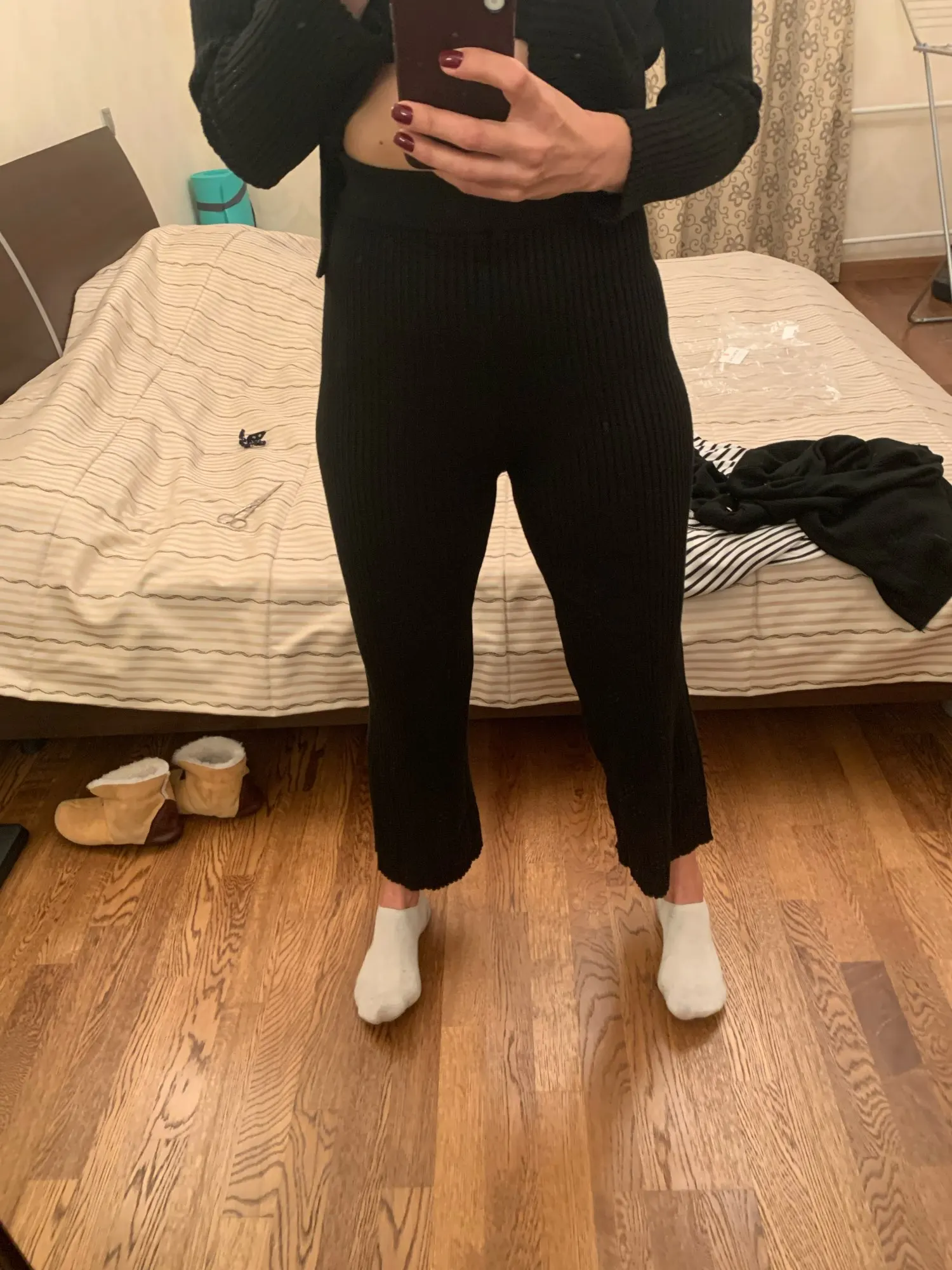 Мне очень нравится материал и как одежда сидит на моей коже, однако брюки действительно короткие. Я хотел бы, чтобы они были длиннее, чтобы я мог носить их зимой!