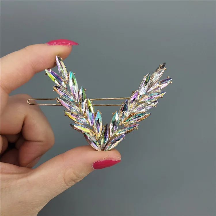 Женские заколки Стразы с кристаллами, роскошные заколки для волос с буквами V и перьями, аксессуары для волос, головные уборы, модные подарочные украшения для девочек