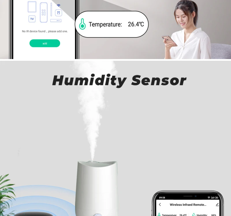 2. Через мобильное приложение вы можете использовать его с другими смарт-устройствами для создания собственной смарт-сцены. В соответствии с датчиком температуры и влажности, можно регулировать влажность и температуру в окружающей среде.