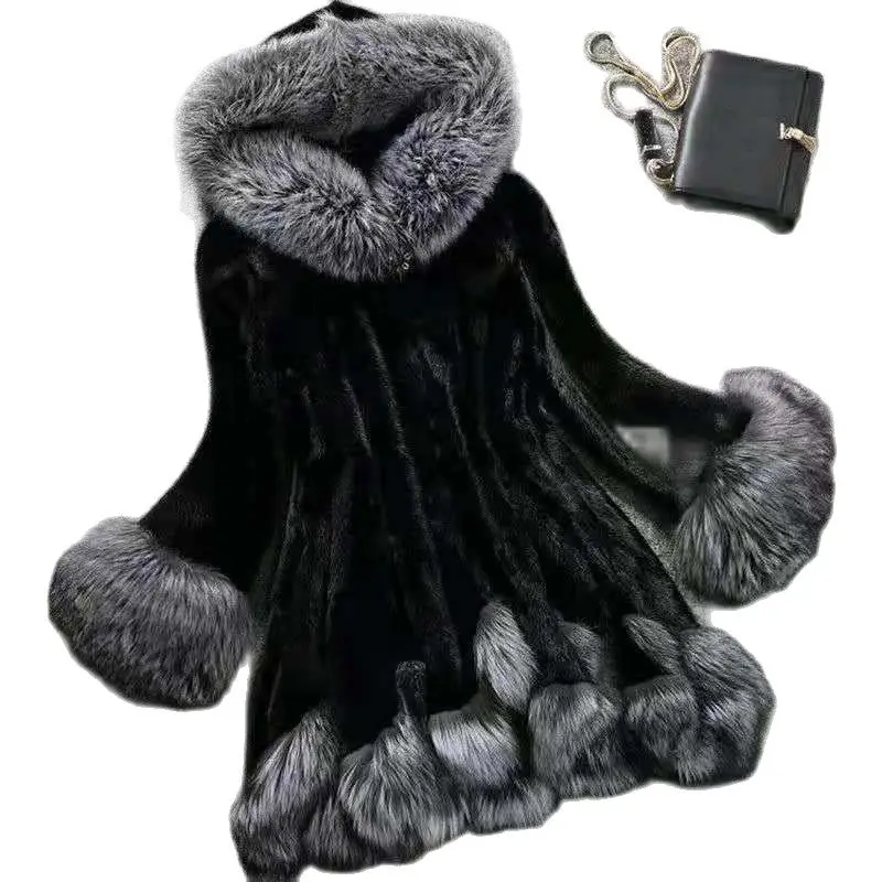 Шуба женская из искусственного меха норки, с капюшоном, 6XL, Осень-...