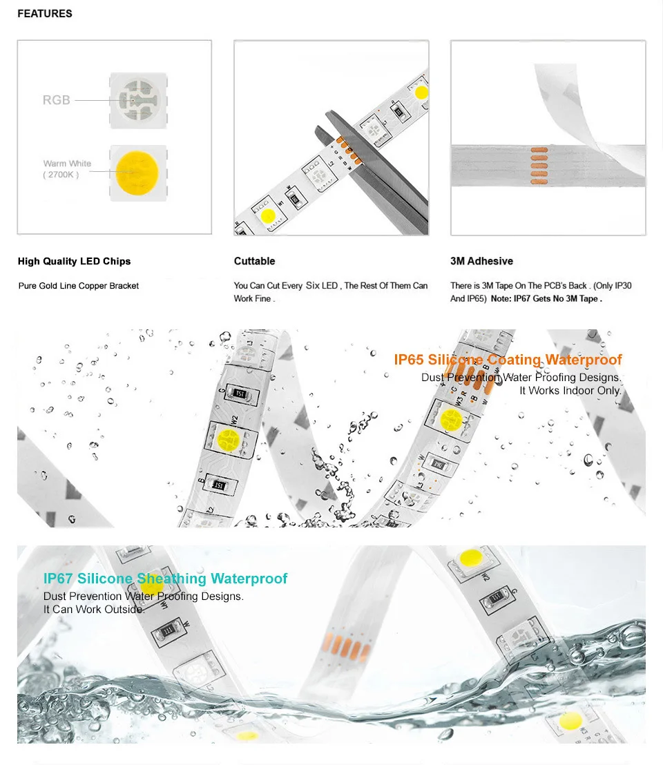 5 м RGBCW IP65 : 5 м 60 светодиодов/м 5050 RGB + холодный белый 12 В водонепроницаемое силиконовое покрытие