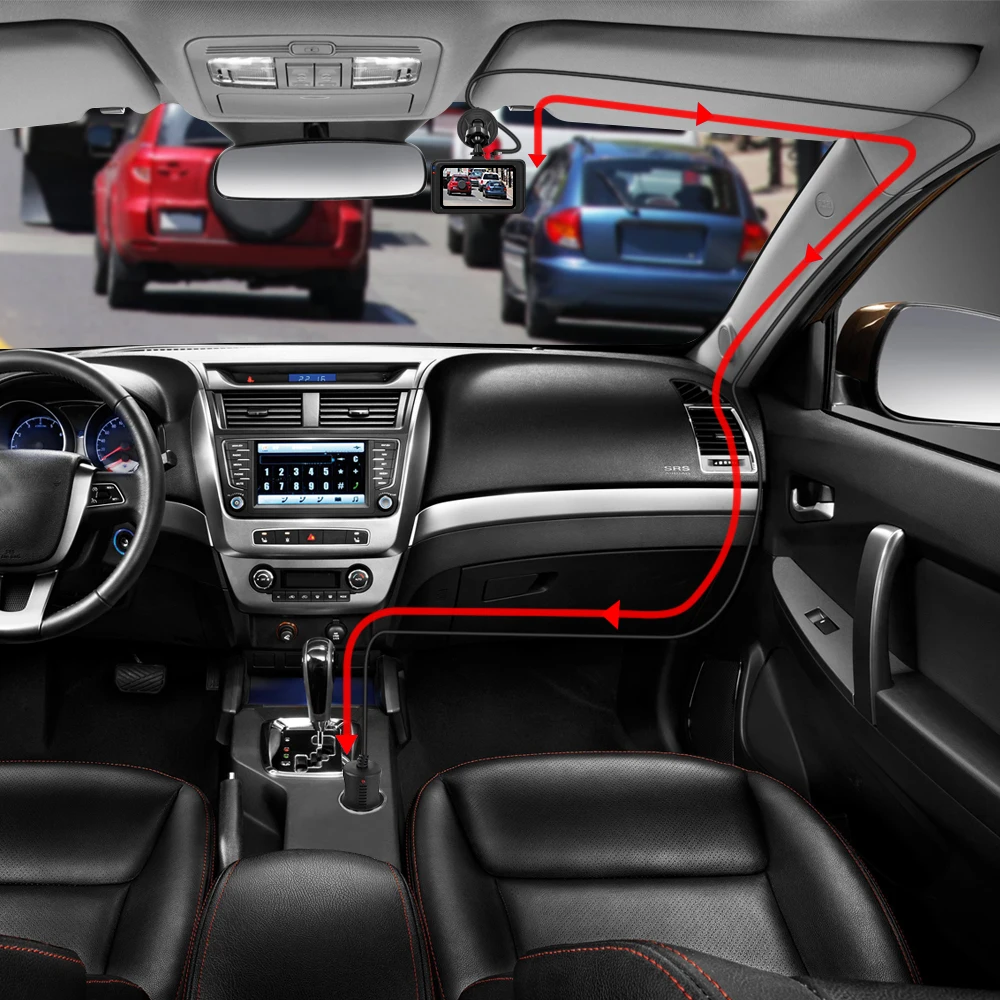 1. Удалите грязь с лобового стекла и кронштейна присосок перед установкой кронштейна.2. Установите присоску на камеру и поместите ее параллельно на лобовое стекло автомобиля.3. Плотно прижмите присоску к ветровому стеклу и плотно нажмите на кронштейн.4. Подключите USB Автомобильное зарядное устройство к прикуривателю автомобиля, затем проводите кабель вдоль зазоров автомобиля.5. Подключите Micro USB головку автомобильного зарядного устройства к usb-порту камеры.6. Отрегулируйте камеру под соответствующим углом, чтобы убедиться, что передняя часть автомобиля видна с экрана камеры.