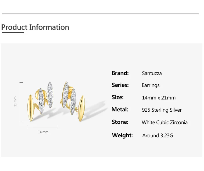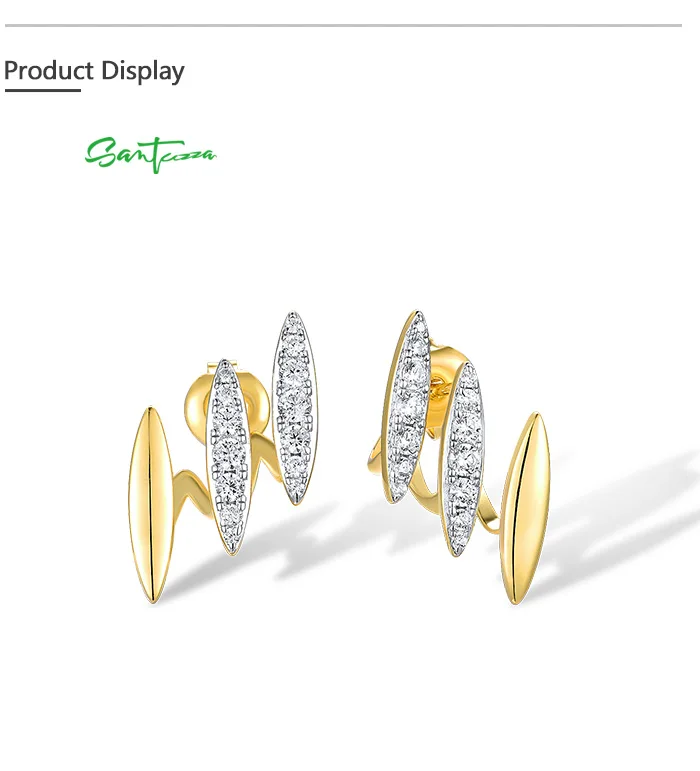 Женские серьги-гвоздики SANTUZZA, из серебра 925 пробы, со сверкающим белым кубическим цирконием, золотистого цвета, милые ювелирные украшения из драгоценных камней