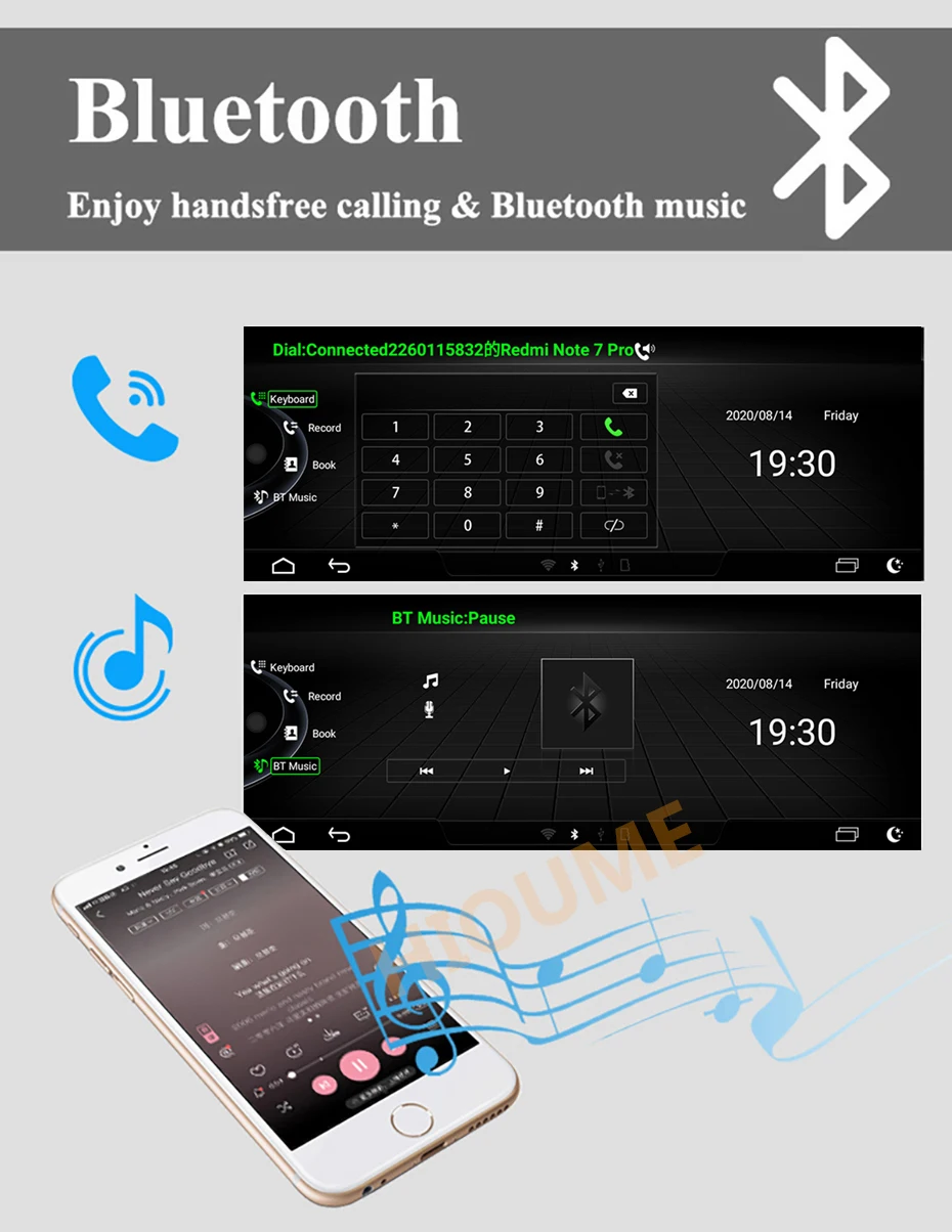 > Встроенный Bluetooth, поддерживает синхронизацию телефонной книги, звонки без рук и Потоковую передачу музыки с вашего телефона, возможность передавать Spotify и Pandora с вашего телефона через Bluetooth, чтобы наслаждаться миллионов песен, которые вам нравятся.