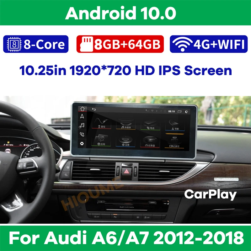 Автомобильный DVD-плеер, мультимедийный плеер с GPS-навигацией, Android 10, 10,25 дюйма, для AUDI A6 A7 2012-2018, 2G, 3G, MMI, CarPlay, 8G + 128G