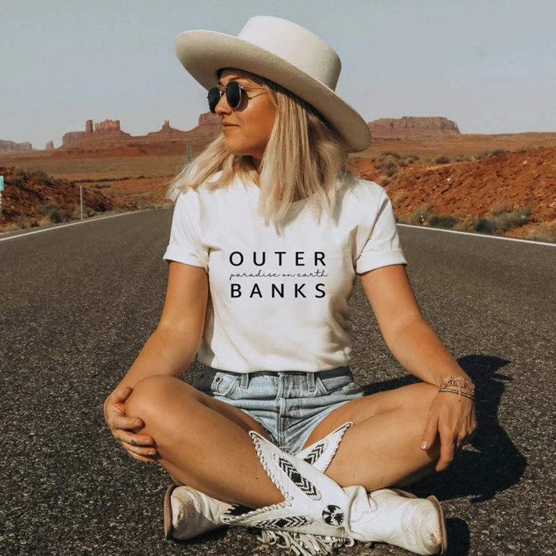 Внешняя рубашка Бэнкса, рай на земле, футболки, Женская хлопковая футболка унисекс, Северная Каролина, OBX, Пляжная футболка, хиппи, топ, Ван, футболка