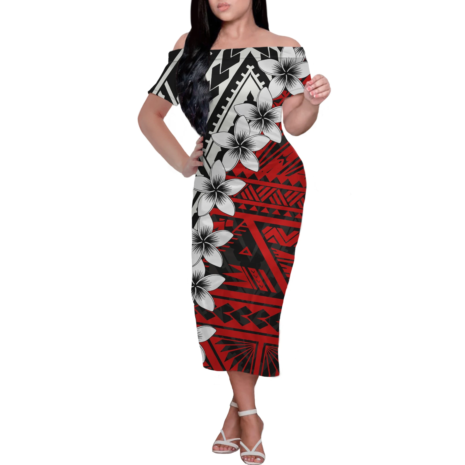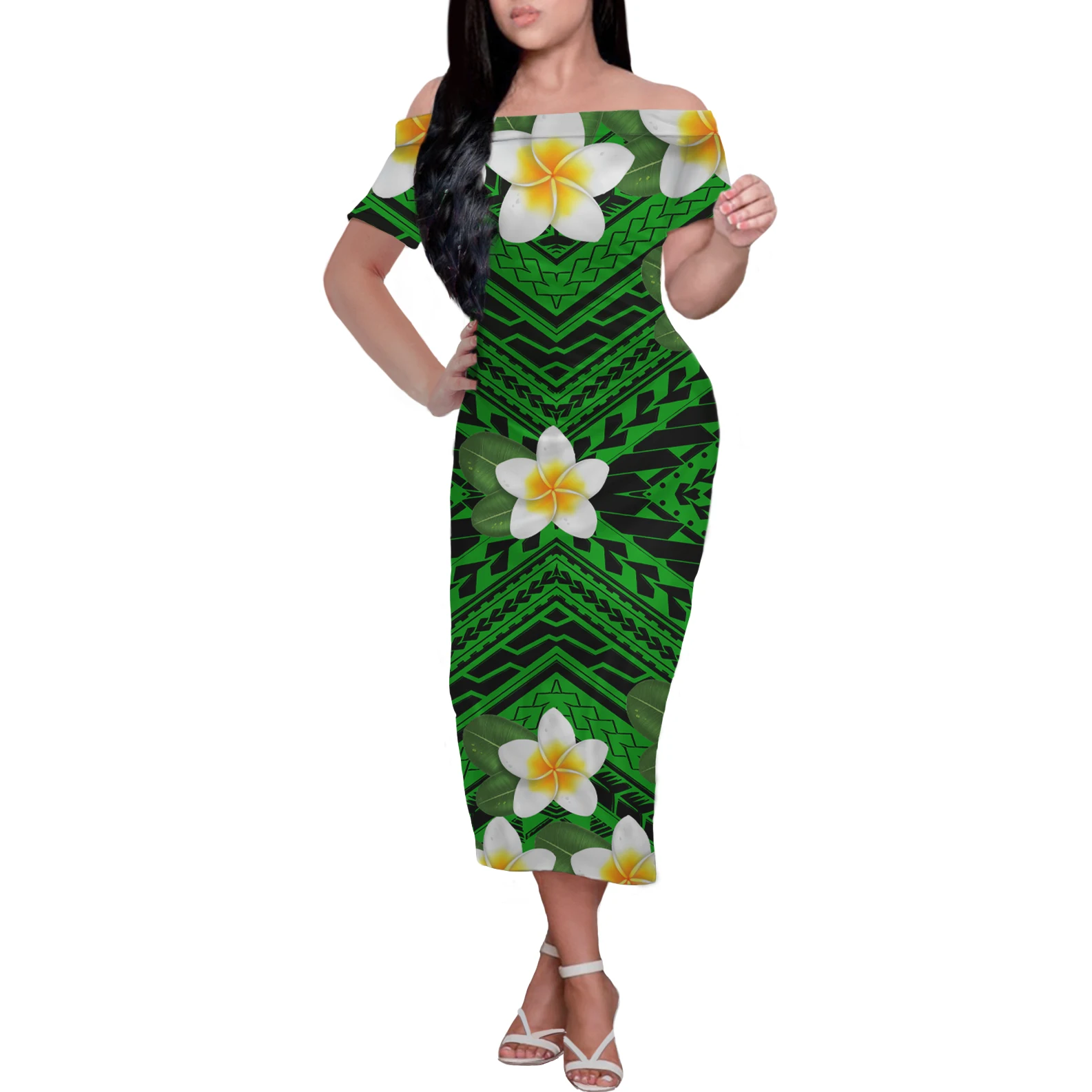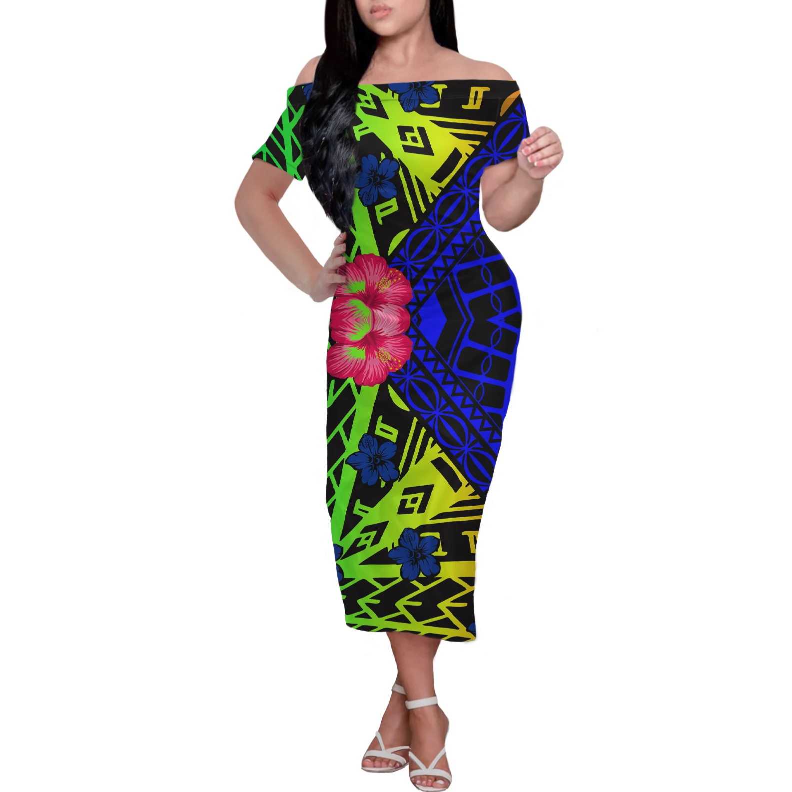 HYCOOL Самоа сексуальное платье с открытыми плечами, с Гавайскими ц...