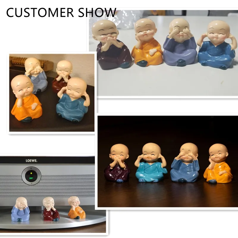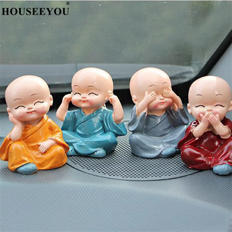 4 шт.лот изделия из смолы для подарка, милые скульптуры маленьких монахов, милые статуи монахов, Креативные Куклы-Будды, украшение для стола и автомобиля