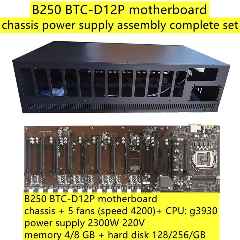 Посылка включает в себя:1 * B250 BTC-D12P материнская плата1 * шасси5 * вентилятор1 * ЦП1 * Мощность поставить 2300W 220V1 * RAM1 * жесткий диск