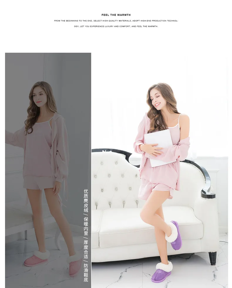 Плюшевые домашние тапочки, женские зимние теплые замшевые тапочки с...