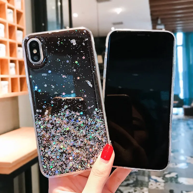 Блестящий Мягкий чехол со звездами для iPhone 11 12 Mini Pro SE 202...