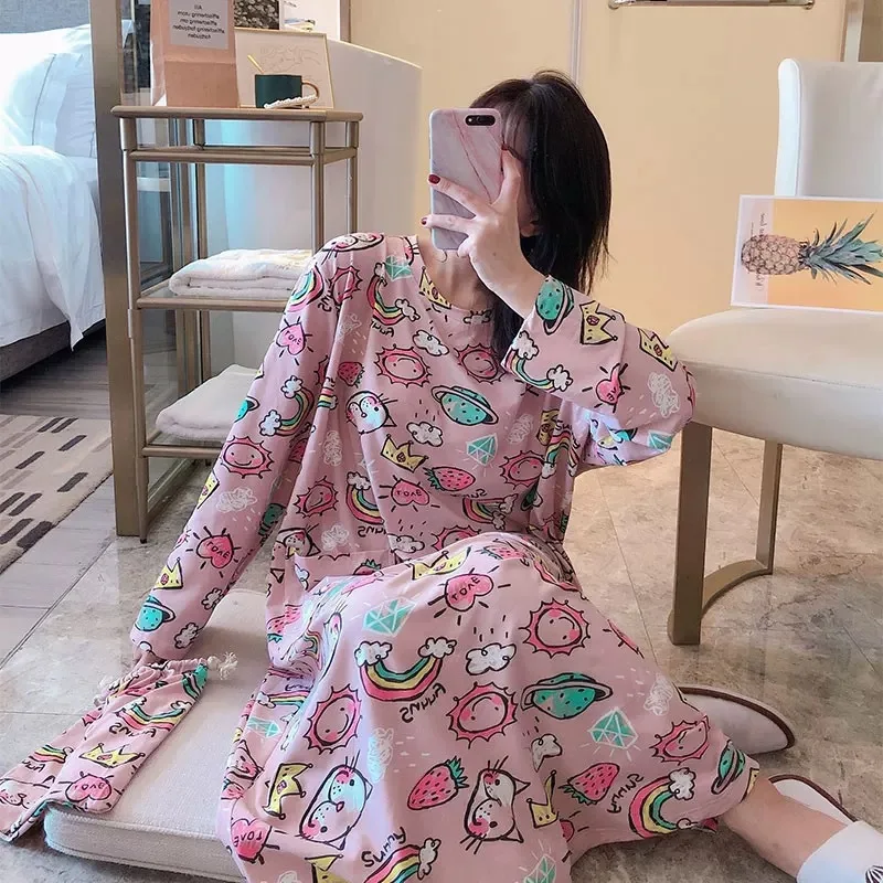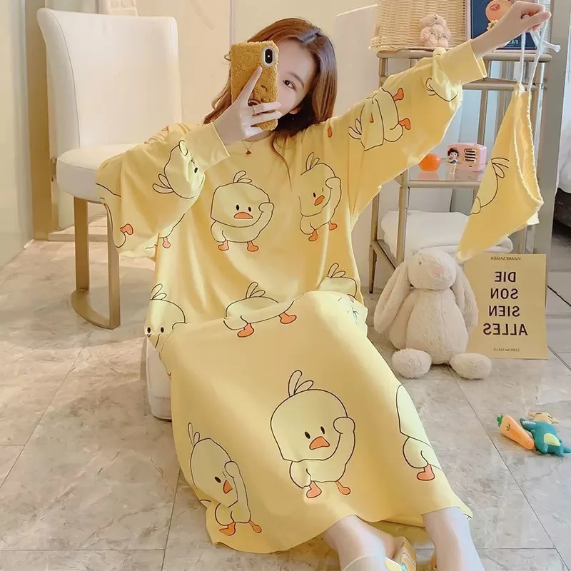 Женские осенне-зимние ночные рубашки с длинным рукавом в Корейском ...