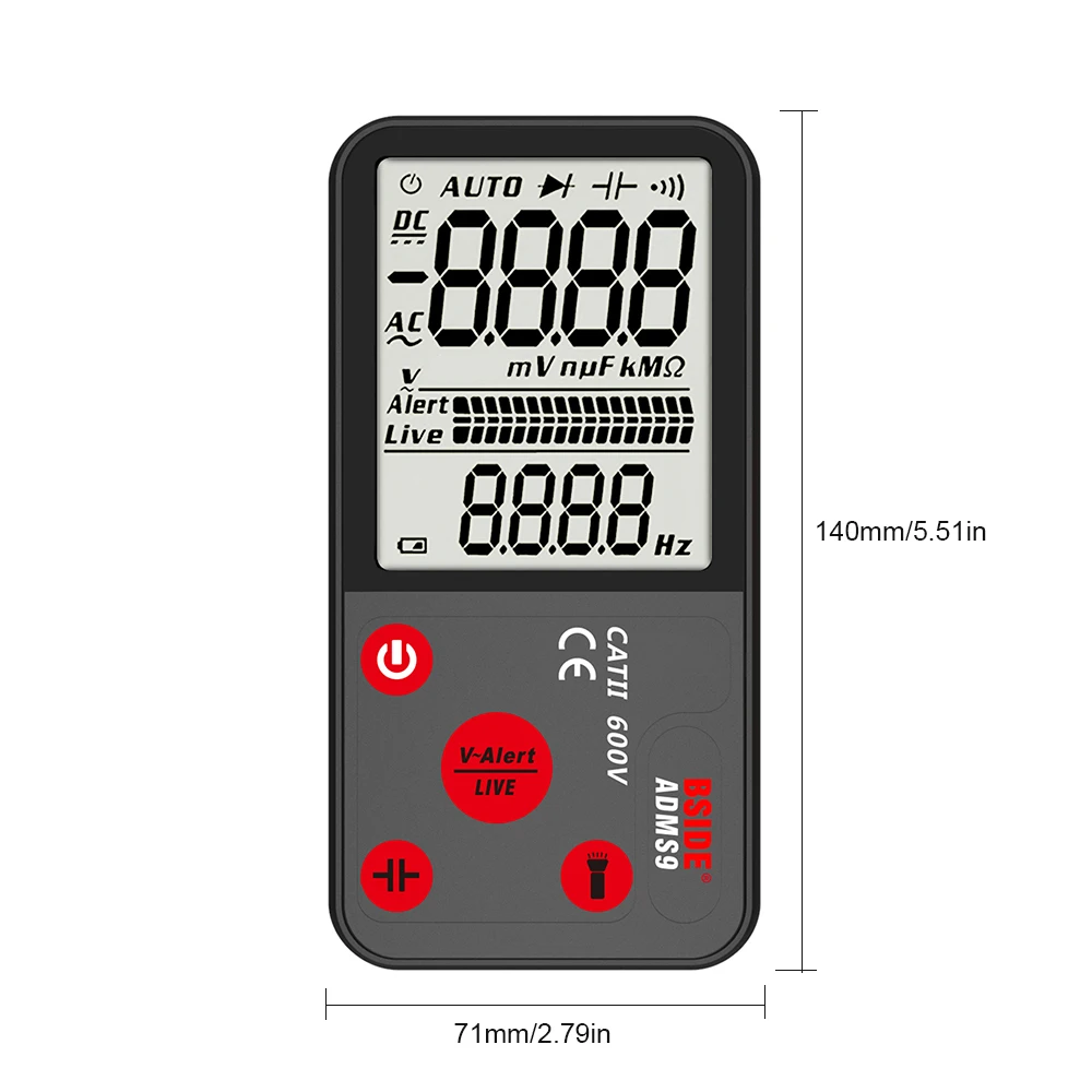Профессиональный цифровой мультиметр BSIDE, истинное среднеквадратичное значение, Ультратонкий большой экран, 9999 отсчетов, мультиметр, тестер сопротивления и емкости сгорания