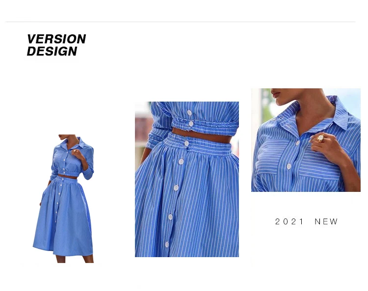 Женское платье-рубашка с карманами, голубое клетчатое платье из двух частей с принтом, элегантный однобортный короткий топ с завышенной талией и трапециевидной юбкой
