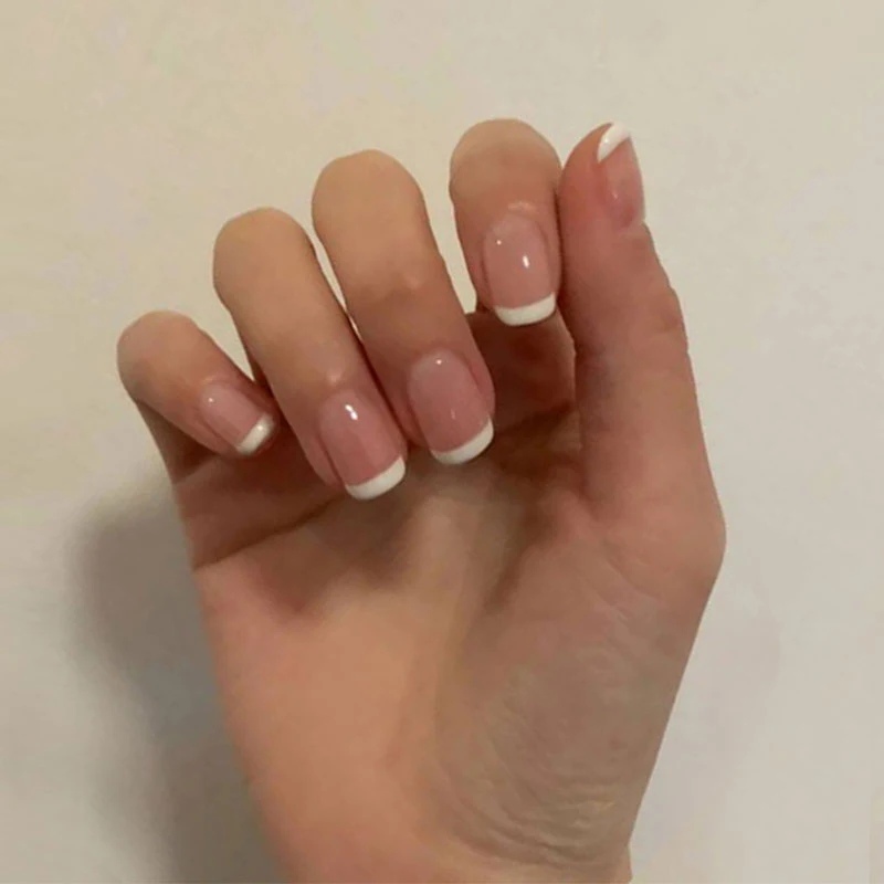 24 шт., накладные ногти с обнаженными розовыми французскими белыми боками