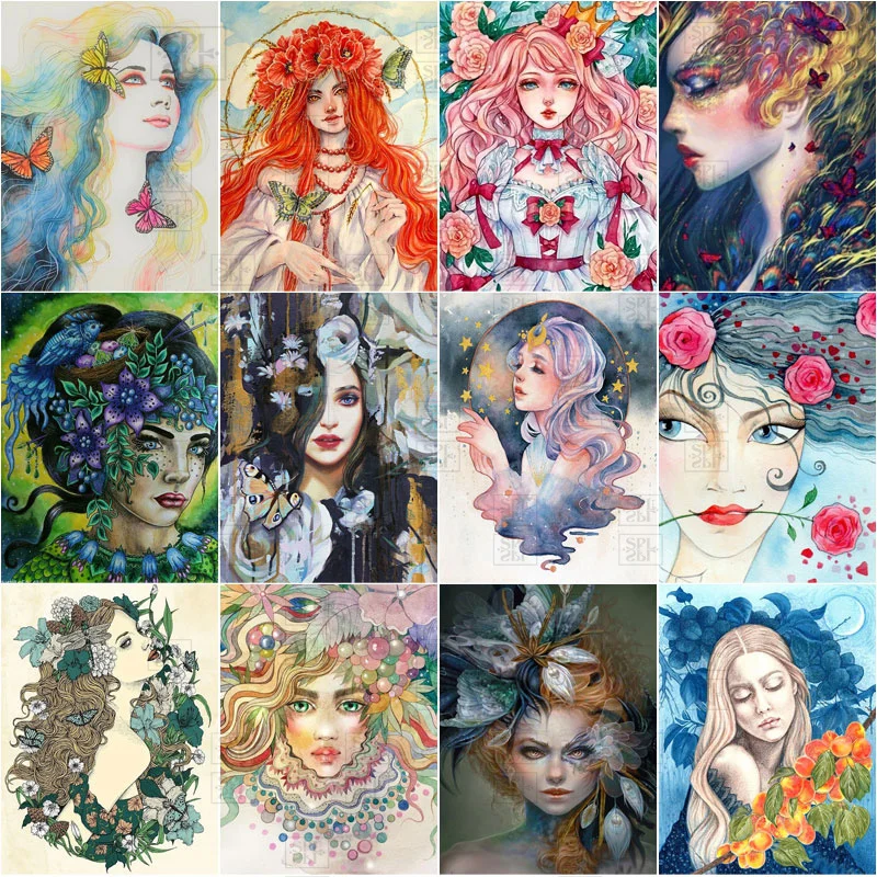 Набор для алмазной живописи, картина 5D с изображением девушки, домашний портрет, иллюстрация персонажа, круглая квадратная мозаика, алмазная вышивка, домашний декор