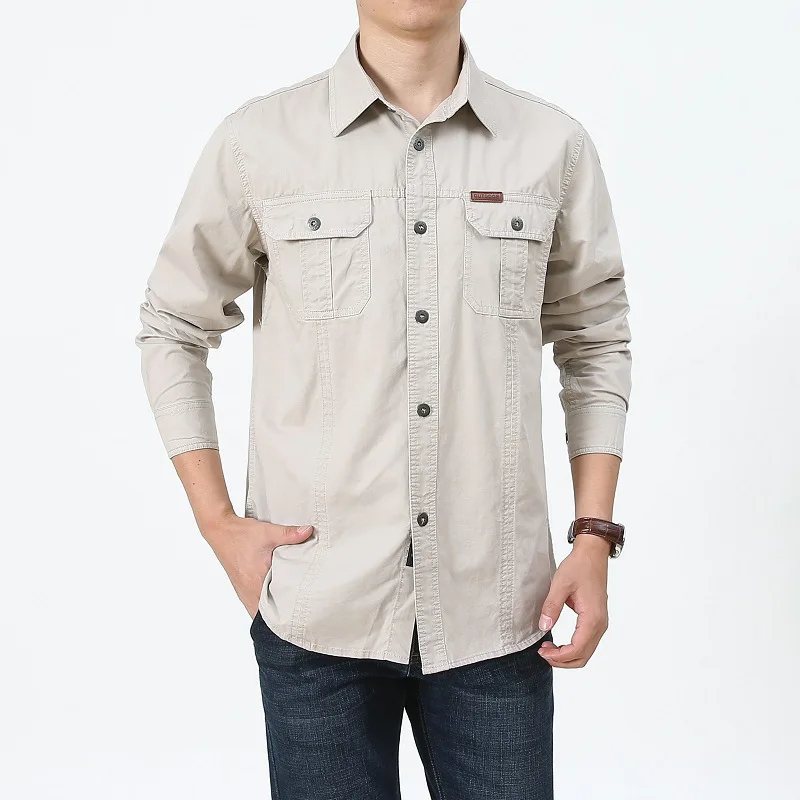 Рубашка мужская хлопковая, с длинным рукавом, в стиле милитари, черного и синего цвета, для весны и осени, M-6XL