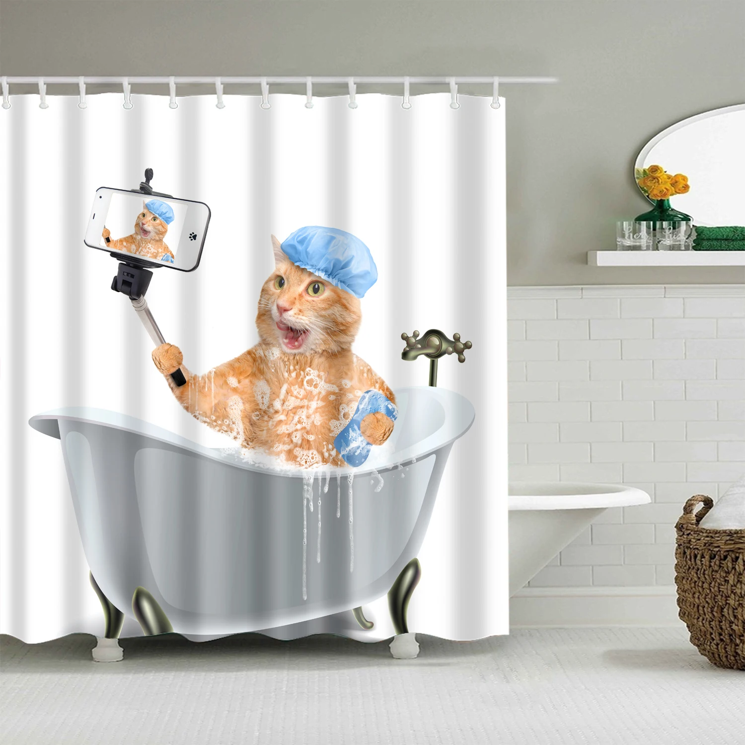 Занавеска для душа с забавными животными, кошкой, водонепроницаемая...
