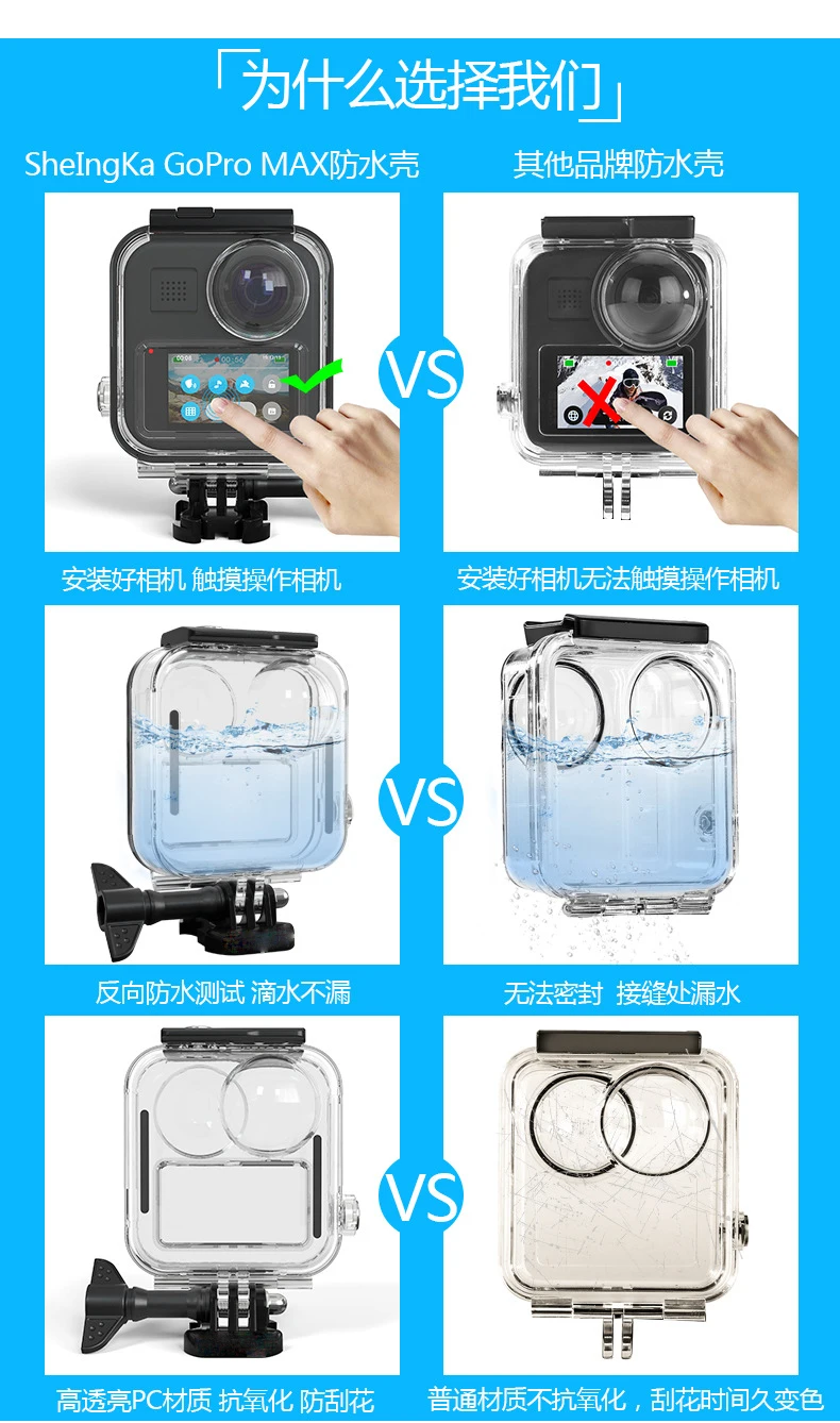Водонепроницаемый чехол для Gopro Max, защитный чехол для подводной съемки и дайвинга с сенсорной функцией, с кронштейном, аксессуары, 20 м
