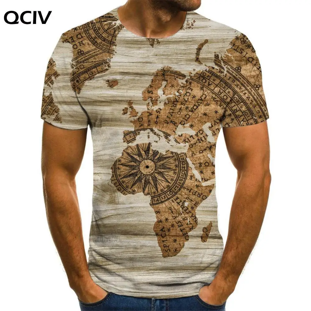 QCIV Рождественская Футболка мужская карта мира аниме одежда украше...
