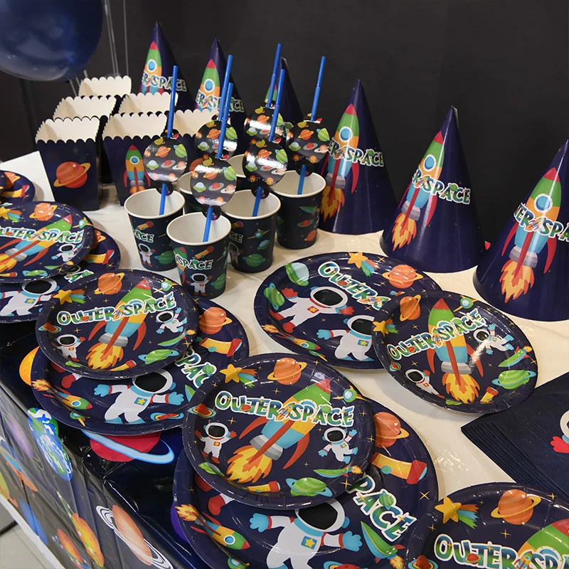 Космические вечерние столовые приборы астронавт тарелка ракета Кубок космический корабль планеты скатерть на день рождения детей, мальчика вечерние принадлежности для ужина