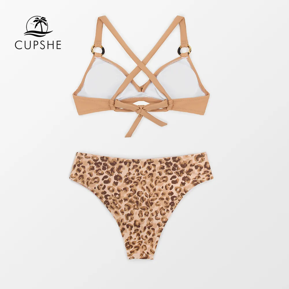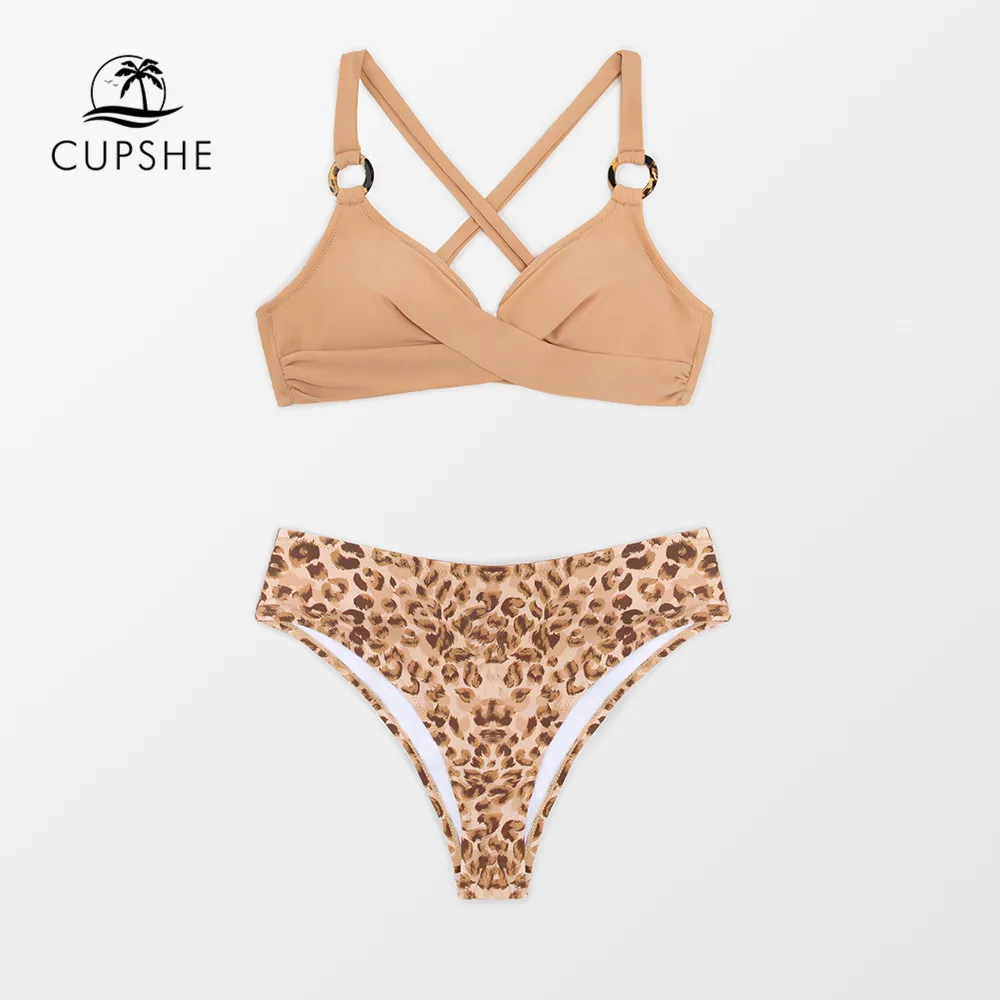 Женский купальник-бикини CUPSHE, оранжевый леопардовый комплект из двух предметов, купальник со средней талией, 2022