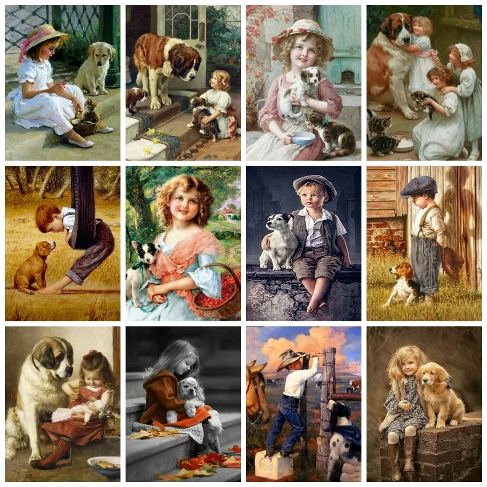 Раскраска по номерам AZQSD для взрослых мальчиков и собак, уникальный подарок для детей, картина маслом на холсте, Раскраска по номерам, фигурка, домашний декор