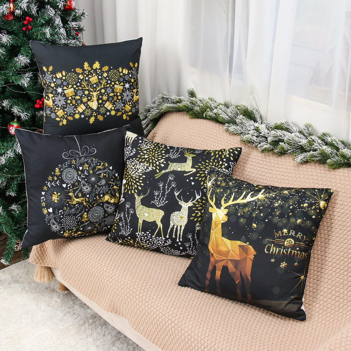 Рождественские украшения для дома, черные, Золотая Подушка, рождественские украшения, 45 см, подарок на Новый год 2021