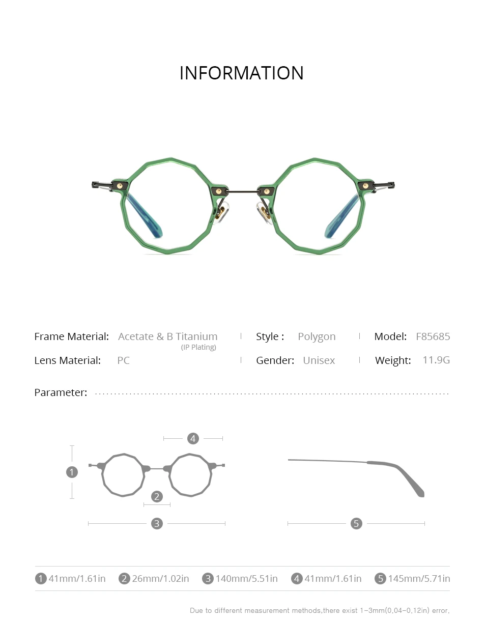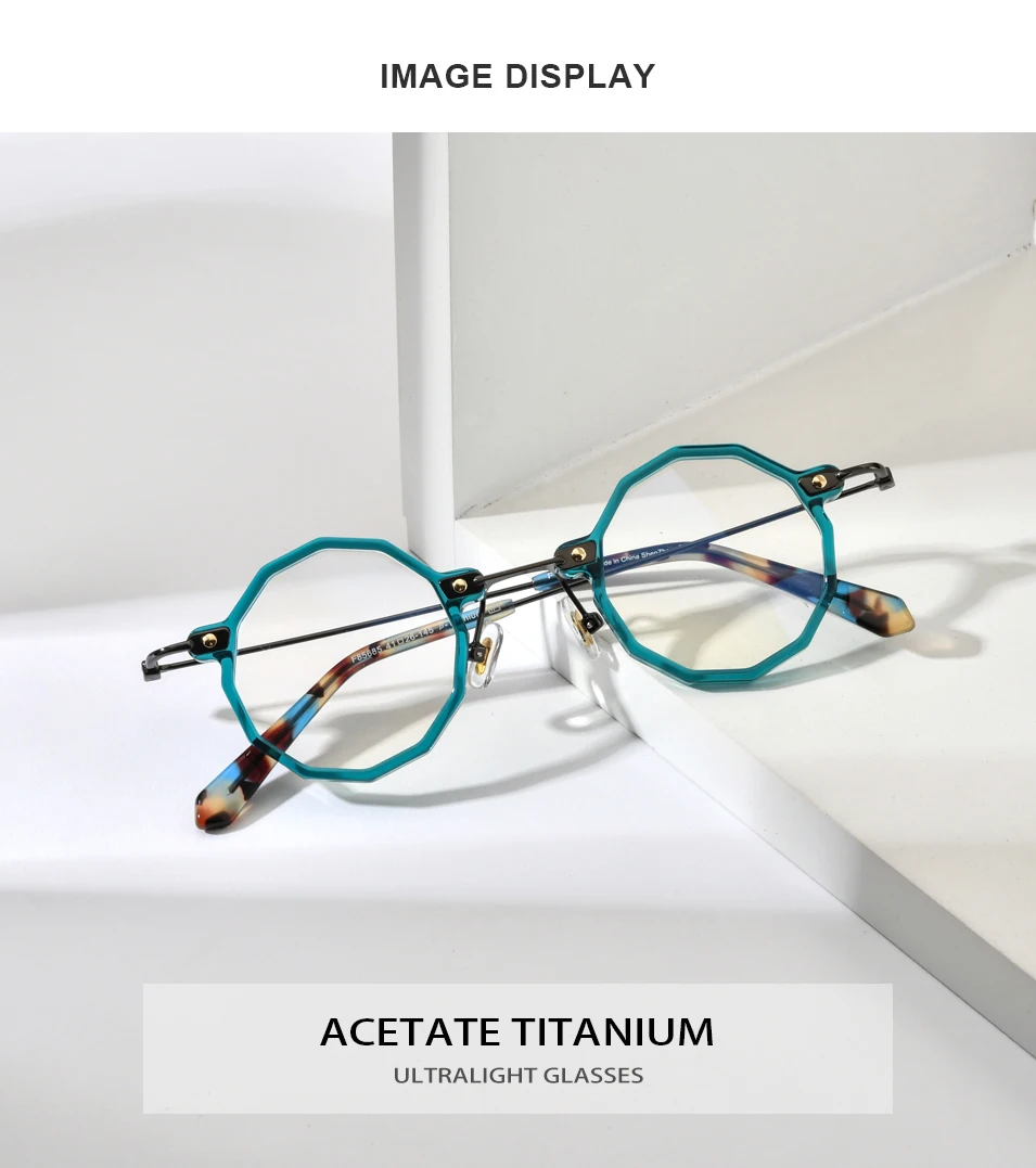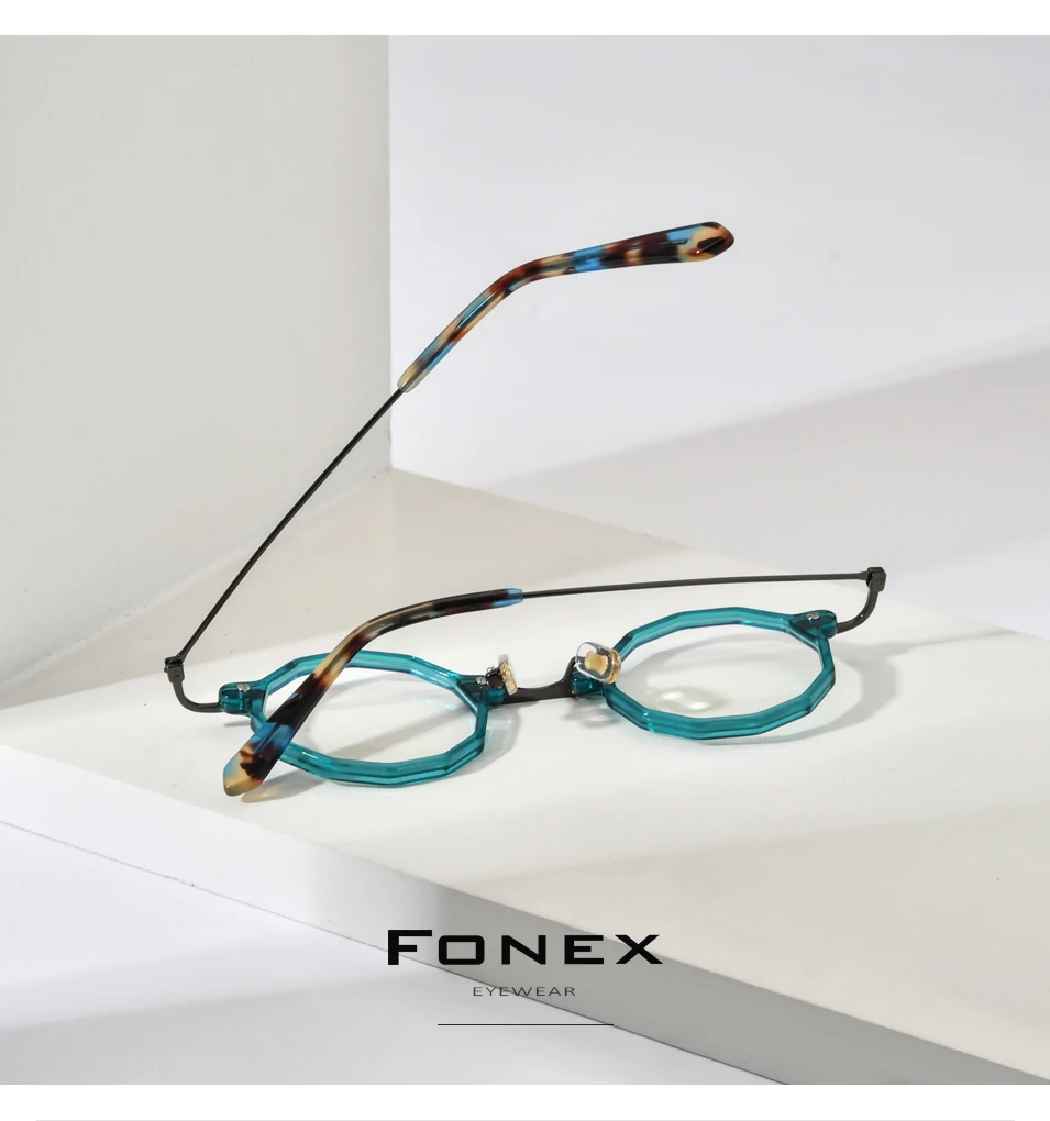 FONEX Титановая оправа для очков , Женская винтажная многоугольная ...
